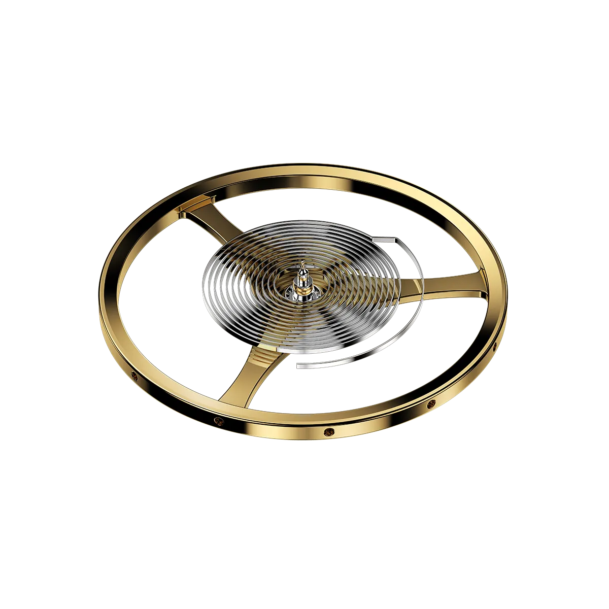 The balance wheel is made of Glucydur, a non-magnetic metal alloy with low thermal expansion that provides greater resistance to deformation, corrosion, and magnetic fields. Glucydur is the optimal alloy for the balance wheel which requires stability. The Nivarox® hairspring has high resistance to temperature changes and contributes to the continuous precision of the regulating organ.