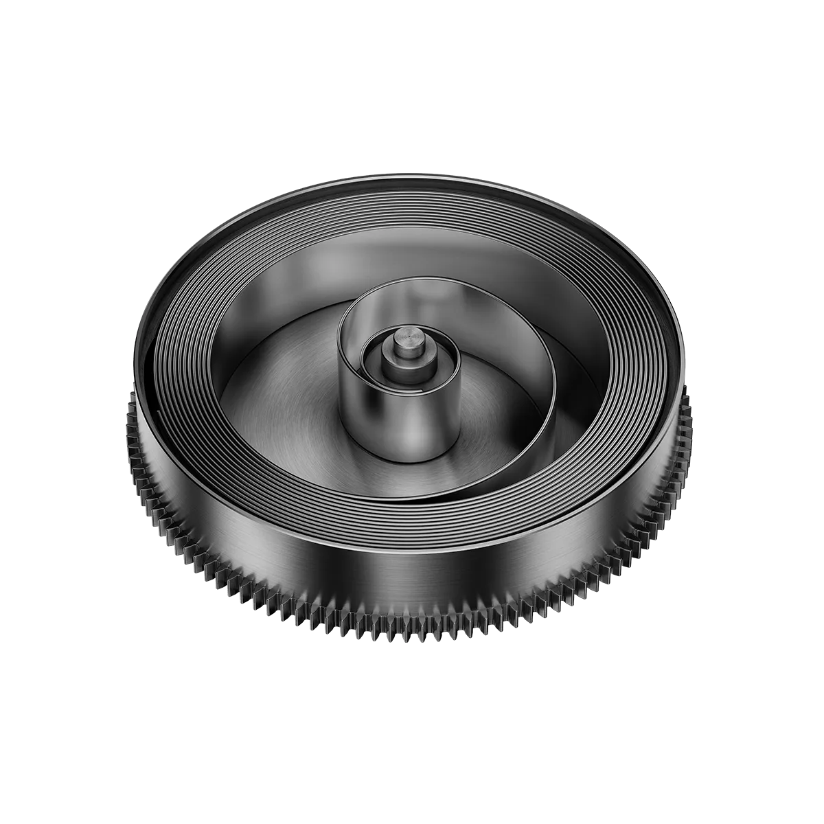 The CMM.10 caliber has a single large barrel manufactured by Générale Ressorts, optimized to ensure a power reserve of 70 hours while preserving a high frequency of 28,800A/h (4Hz). The Nivaflex® barrel spring alloys combine excellent mechanical properties with excellent corrosion resistance, non-magnetic behavior and a very low coefficient of thermal expansion.