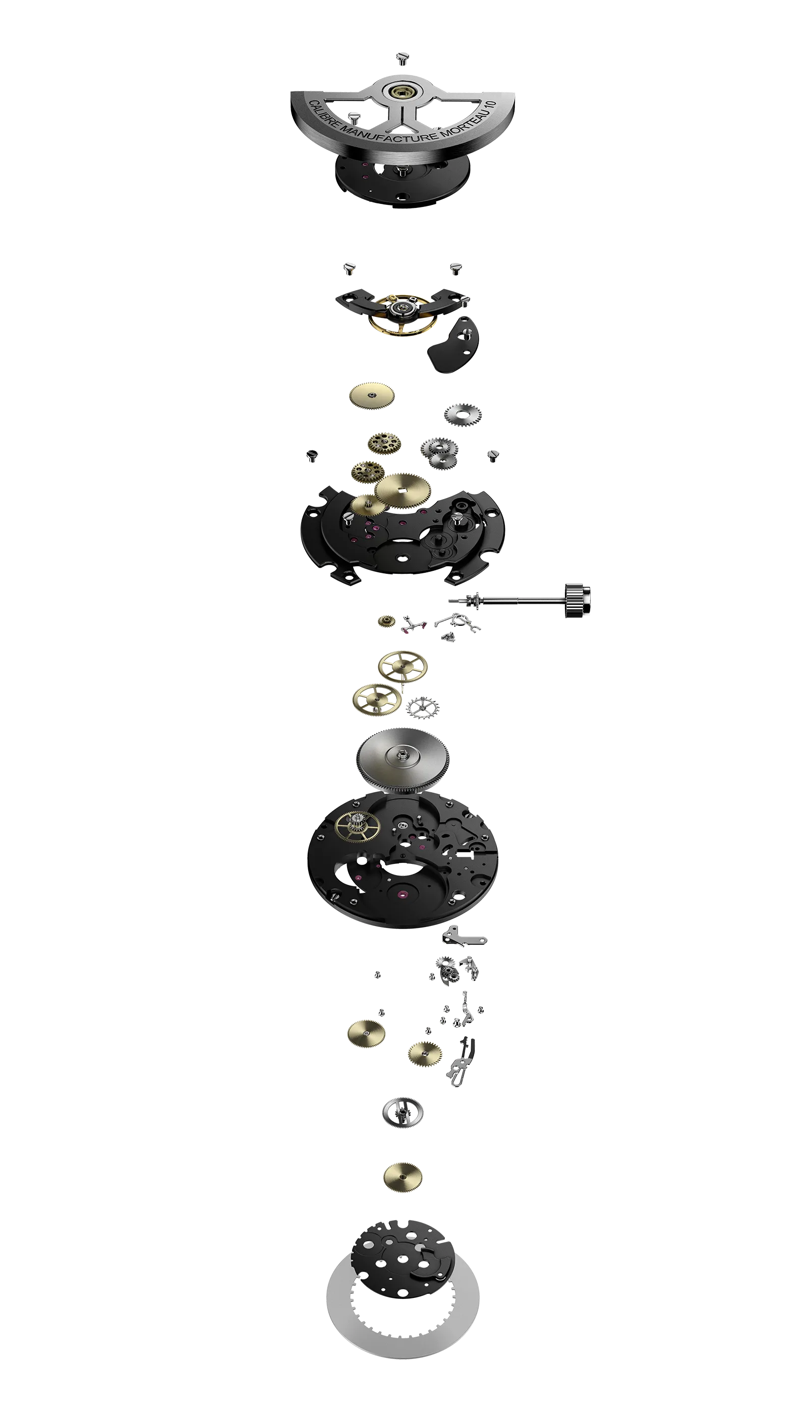 All CMM.10 caliber components are manufactured in France and Switzerland within a range of 72km from Morteau by recognized craftsman in fine watchmaking. The caliber bridges and mainplates are manufactured in YEMA’s workshops in Morteau where final assembly of all components takes place.