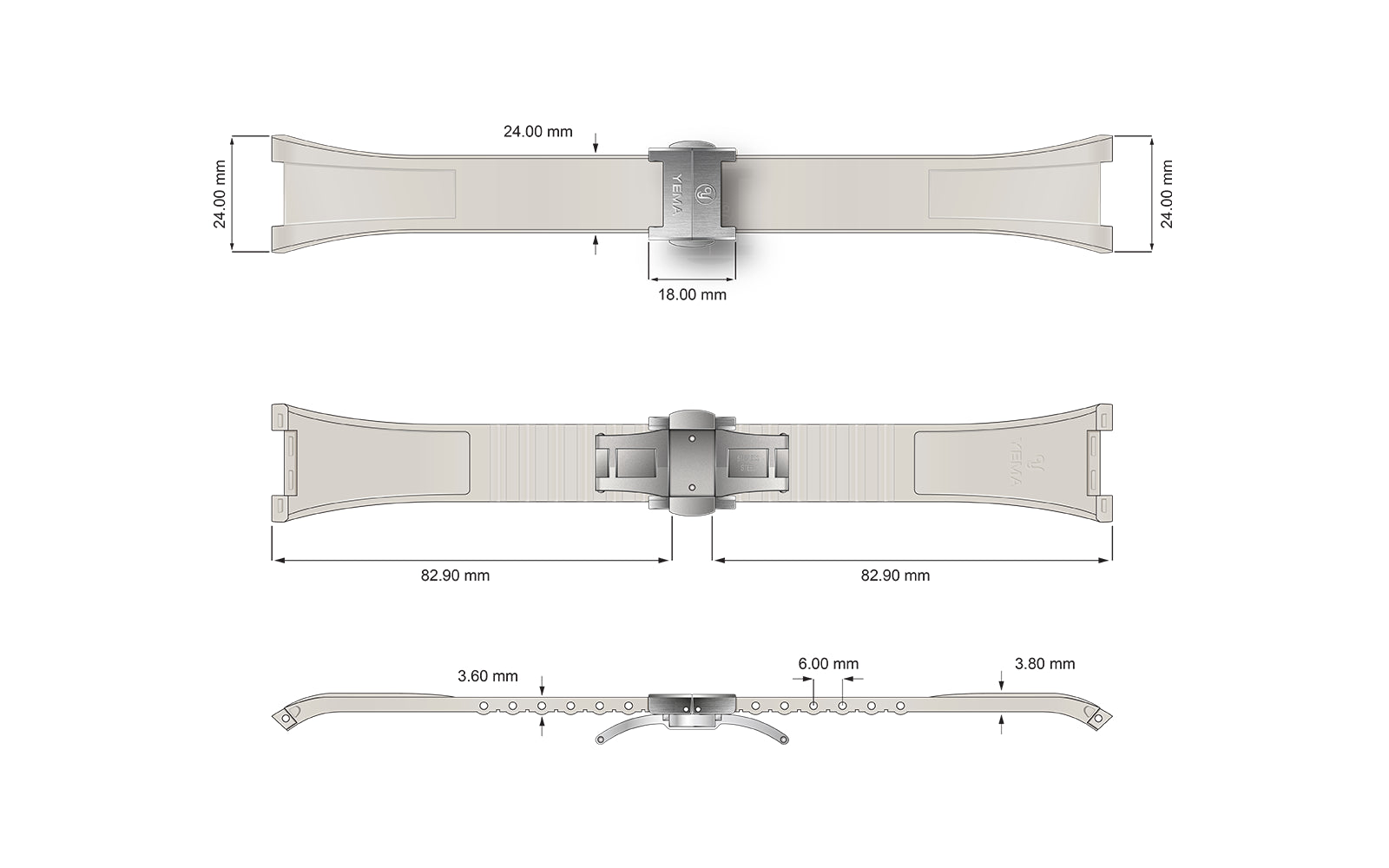 Engineered to achieve both precision fit and in exact correspondence with the Wristmaster Slim / Urban Traveller (Sellita) cases geometry, the strap integrates seamlessly into the lugs, preserving the watch’s streamlined silhouette. The profile tapers progressively toward the buckle, reducing bulk at the wrist while maintaining structural integrity.