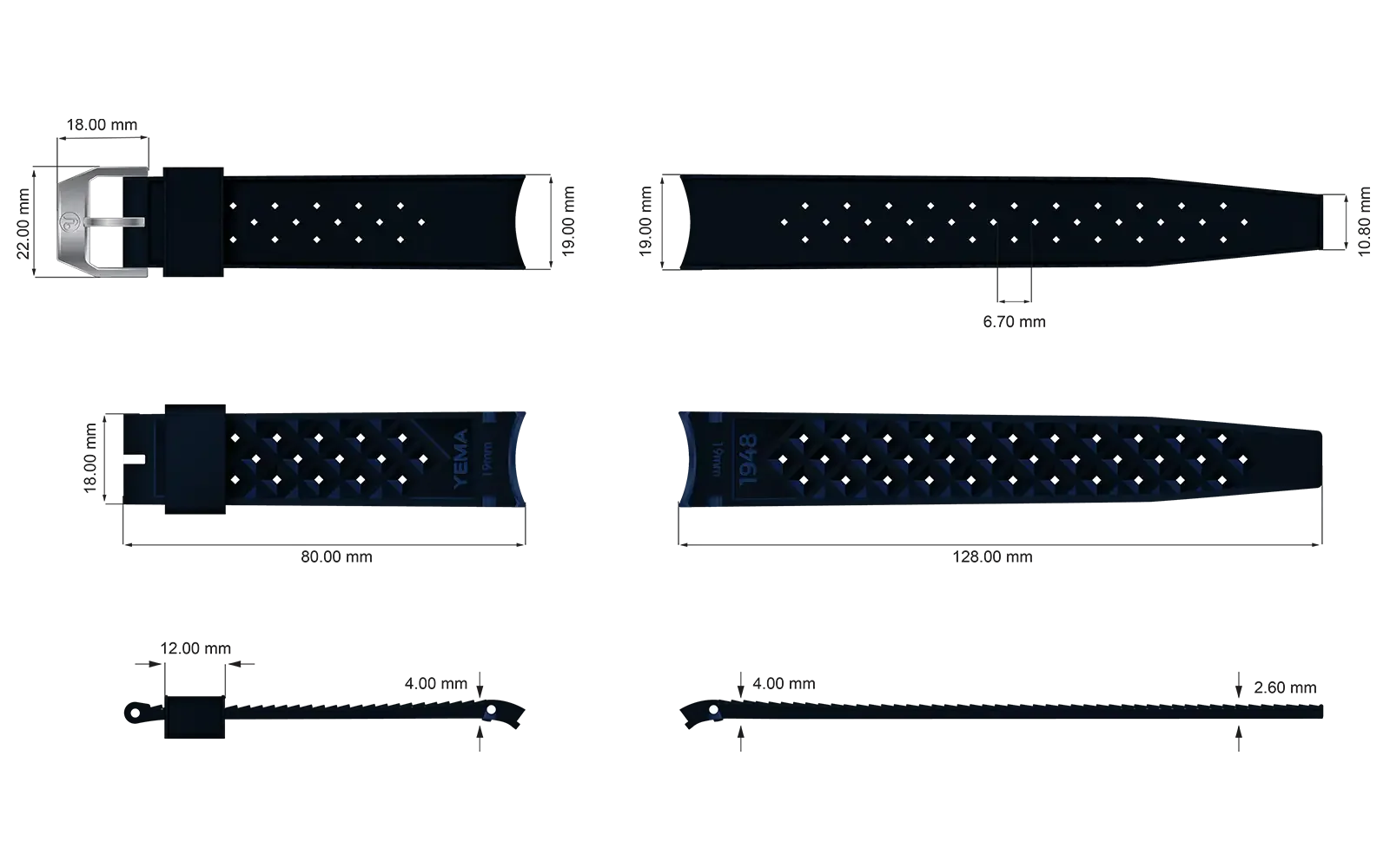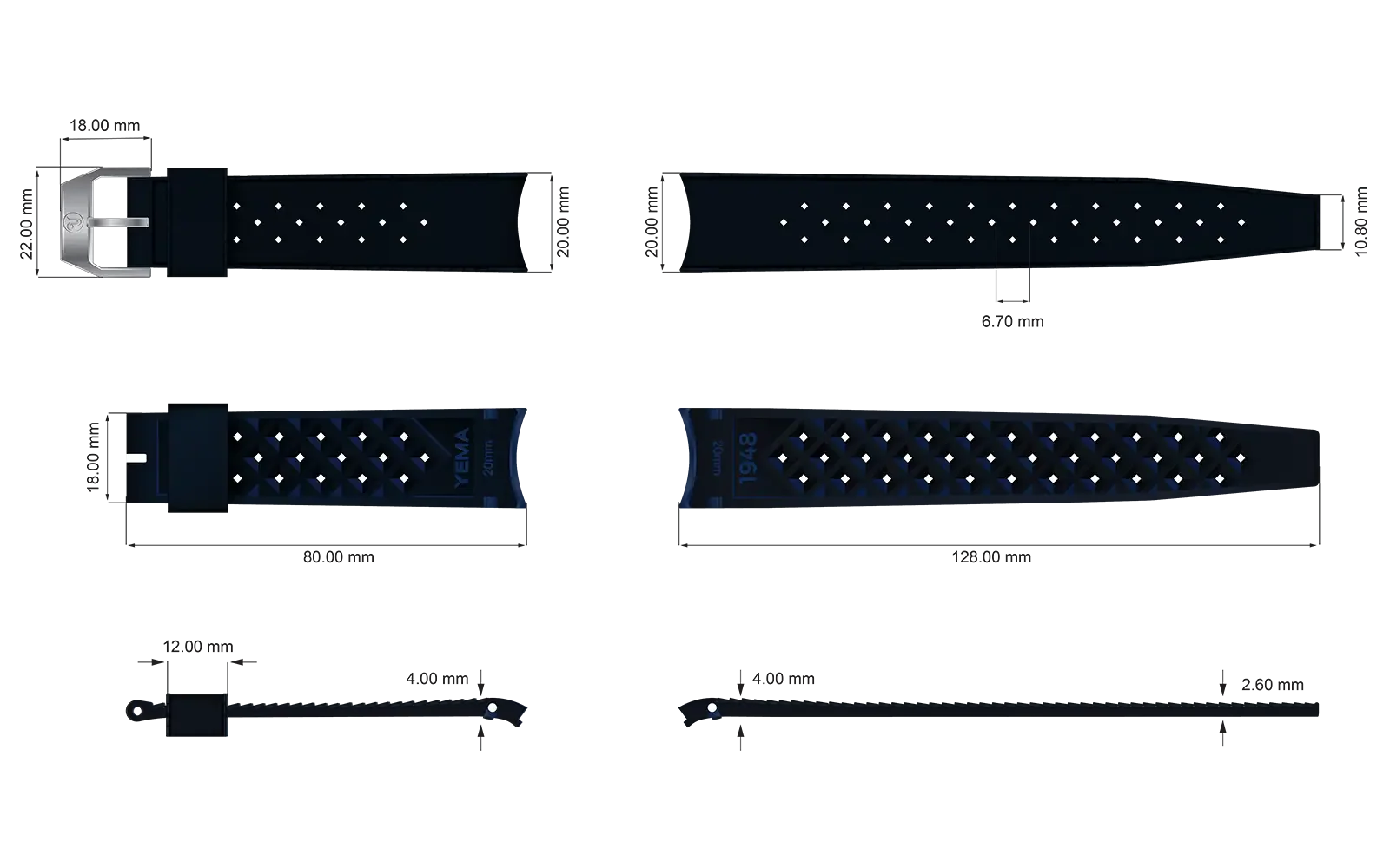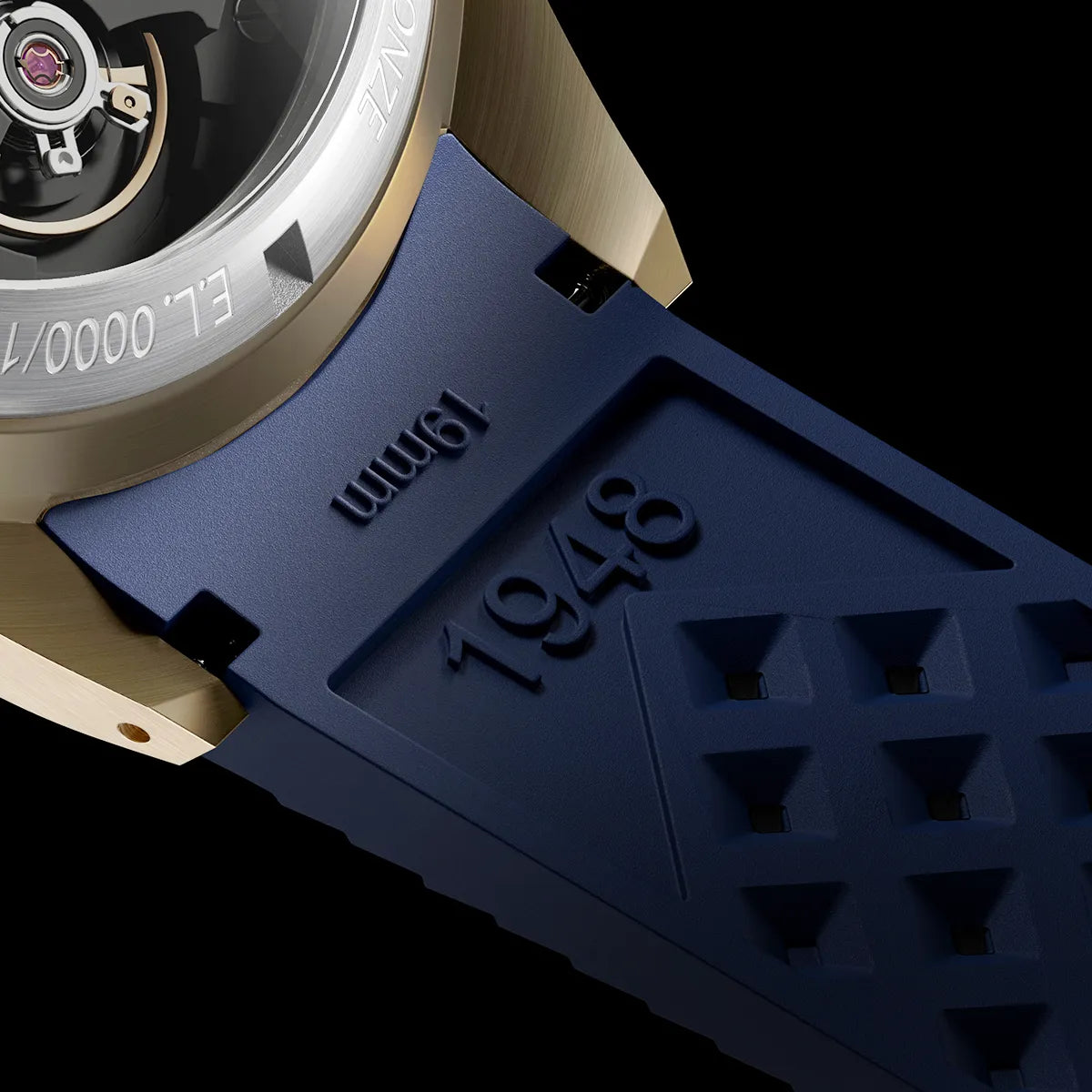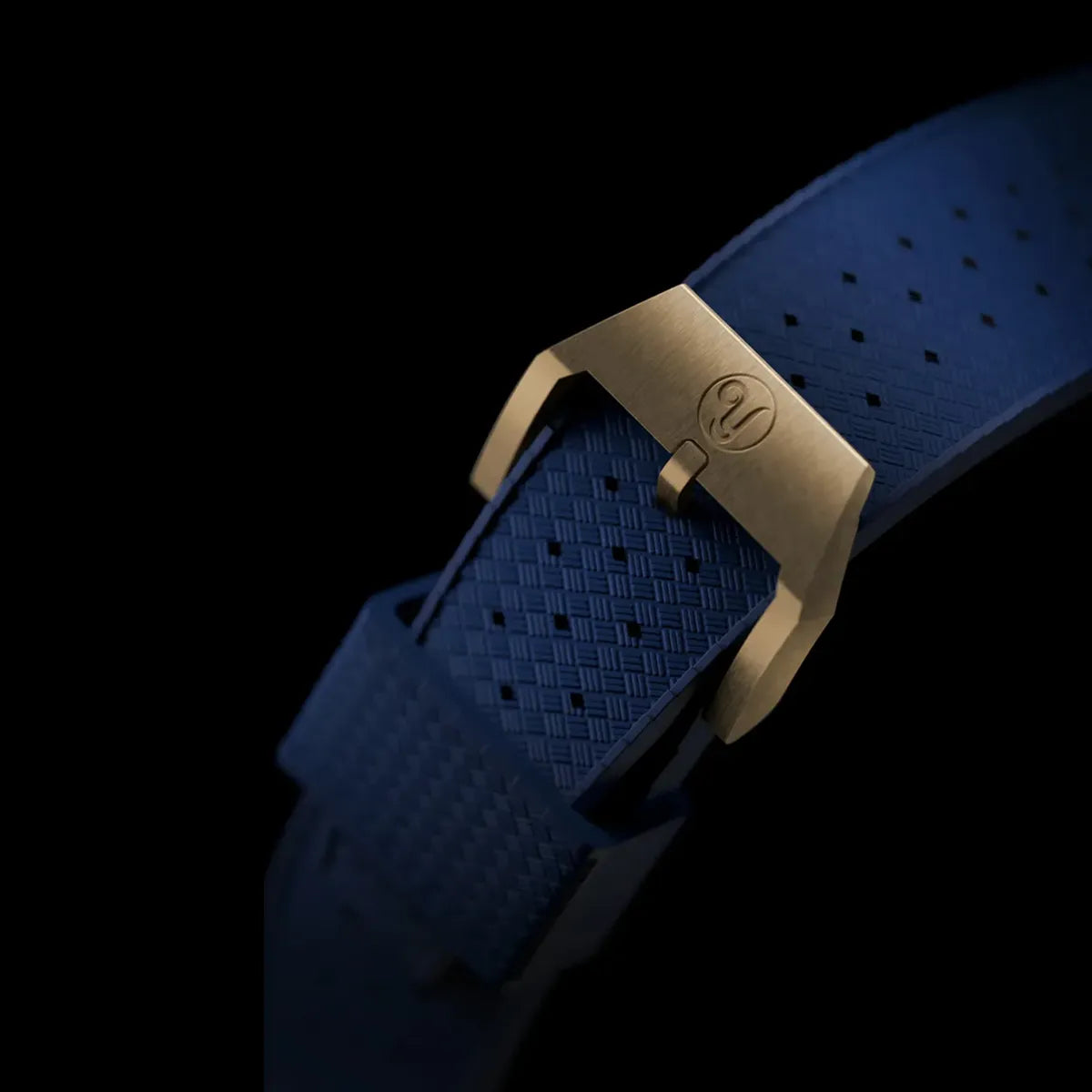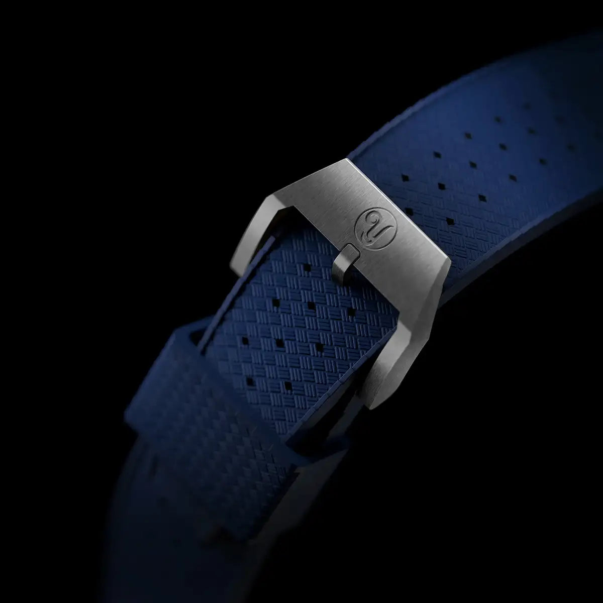 This strap preserves the iconic texture, silhouette, and striking retro aesthetic of the 1960s Rubber strap. Its iconic design features a raised, waffle-like pattern on the underside, providing superior breathability and preventing the strap from sticking to the skin.