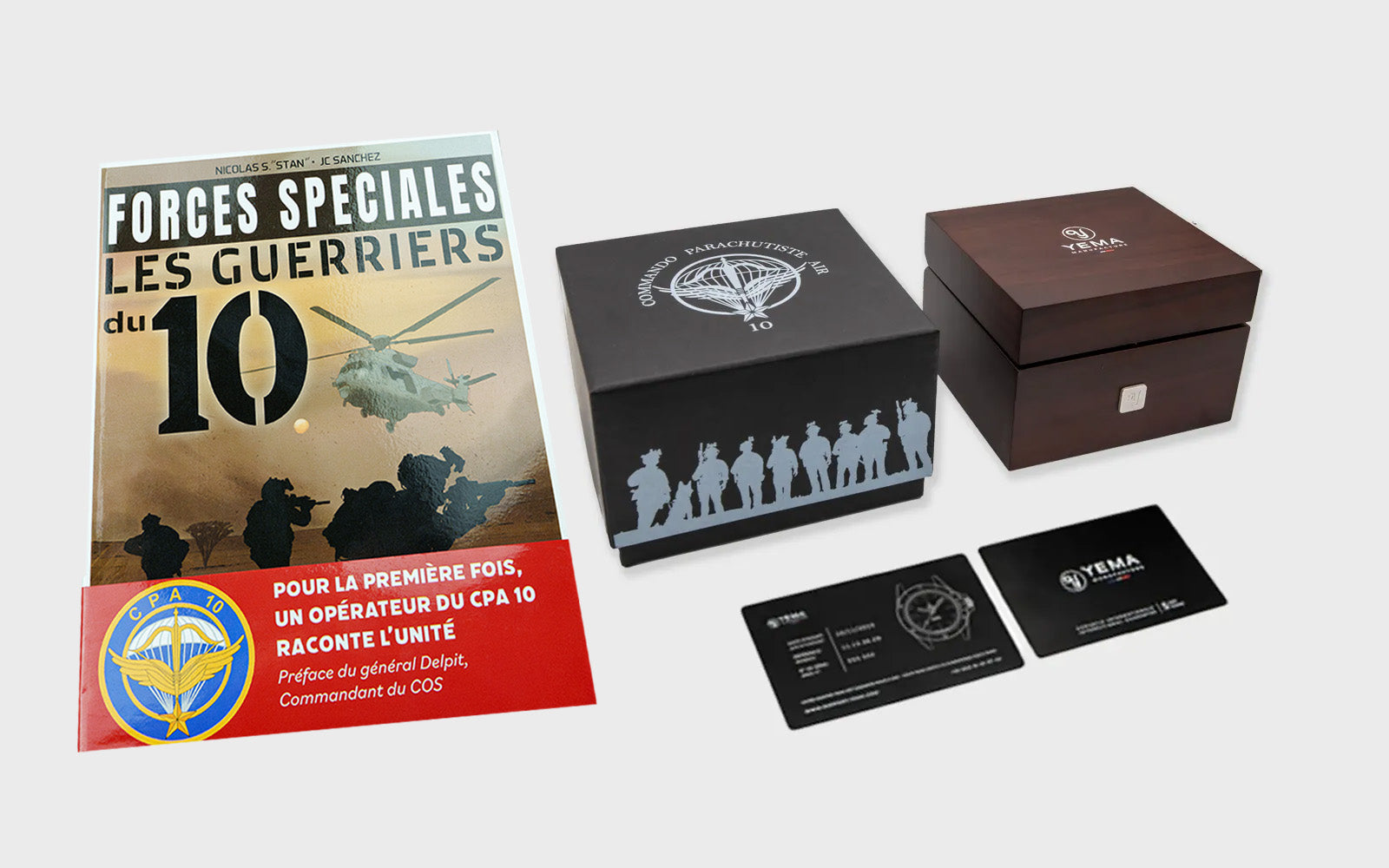 The history between the French Air Force and YEMA dates back to the early 1970s, beginning with an initial issue to the Helicopter Rescue Divers equipped with one of the first YEMA Superman models. Over time, other Superman models were also used by French Air Force pilots, making the model a unique military tool watch with multiple uses.