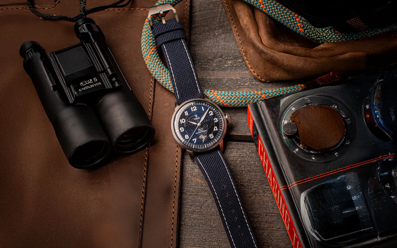 The Flygraf Flieger CPA10 is equipped with a double-domed sapphire crystal, 2.00 mm thick, offering improved legibility, enhanced durability, and a distinctly vintage look.