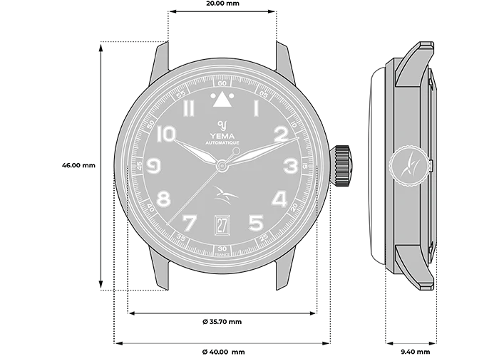 Designed and developed in collaboration with the French Air and Space Force and inspired by Flieger Type A watches, the Flygraf Flieger is a reinterpretation of the legendary military aviation watch model. Featuring a titanium case that is extremely lightweight and durable, this military model is equipped with our in-house caliber, the YEMA 2000.