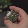 The Grade 2 titanium case (40% lighter than steel) benefits from better resistance to shocks and corrosion. The darker hue of titanium, combined with the case's sandblasted matte finish enhance the overall military look and feel. The 40mm titanium case (46mm lug to lug) combined with a thickness of less than 10mm results in a relatively thin case with contained proportions that perfectly fits all wrists while providing a pleasant dial opening and wearing comfort.