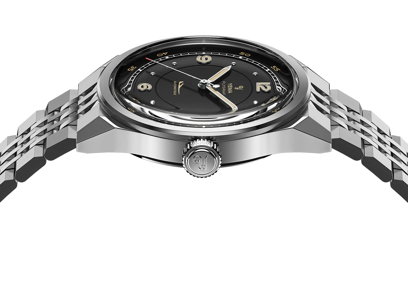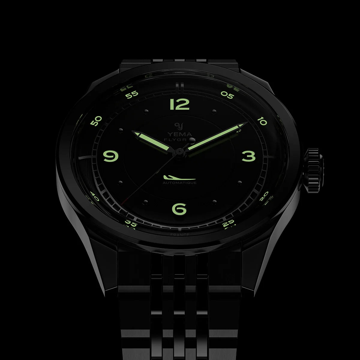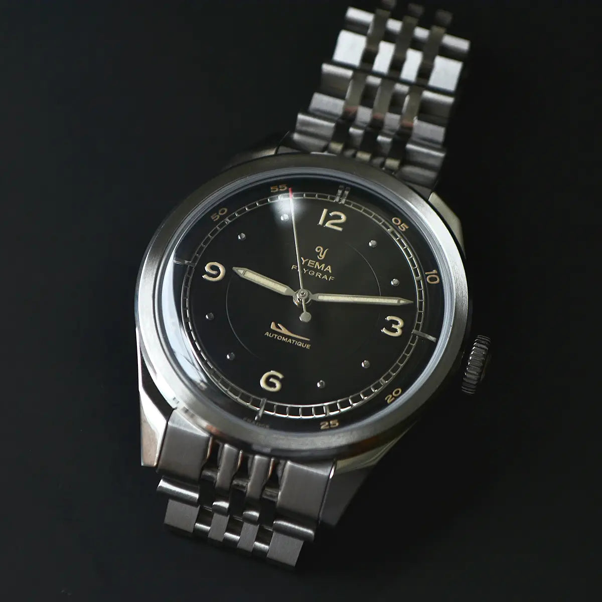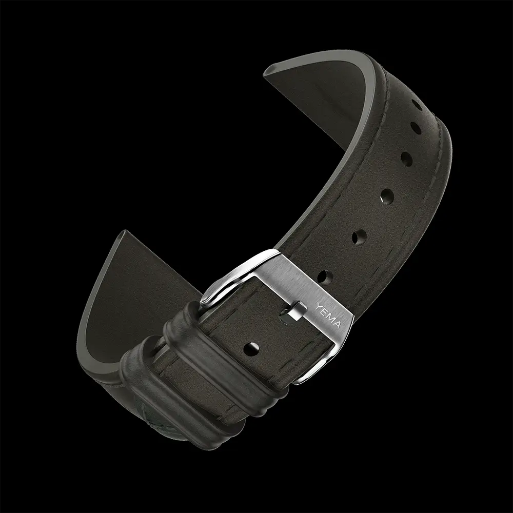 Gently tapering 3mm toward the clasp, the bracelet enhances comfort and balance on the wrist, giving the watch a more elegant profile without compromising its tool-watch character. The solid deployant clasp, engraved with YEMA’s emblem, ensures a secure fit and smooth adjustability.