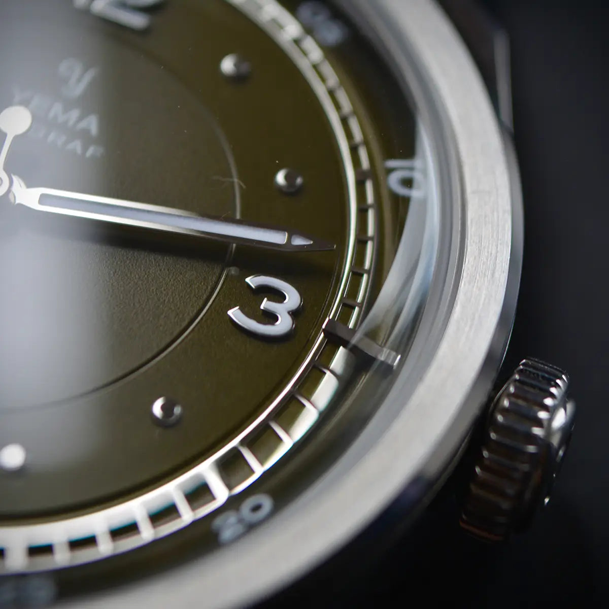 The great level of detail and finishes overall is also found on the steel case-back. Satin-polished and circular brushed finishes elegantly surround YEMA’s historic crest, which is carefully forged into the case-back with a hydraulic press, ensuring a qualitative and refined finishing.