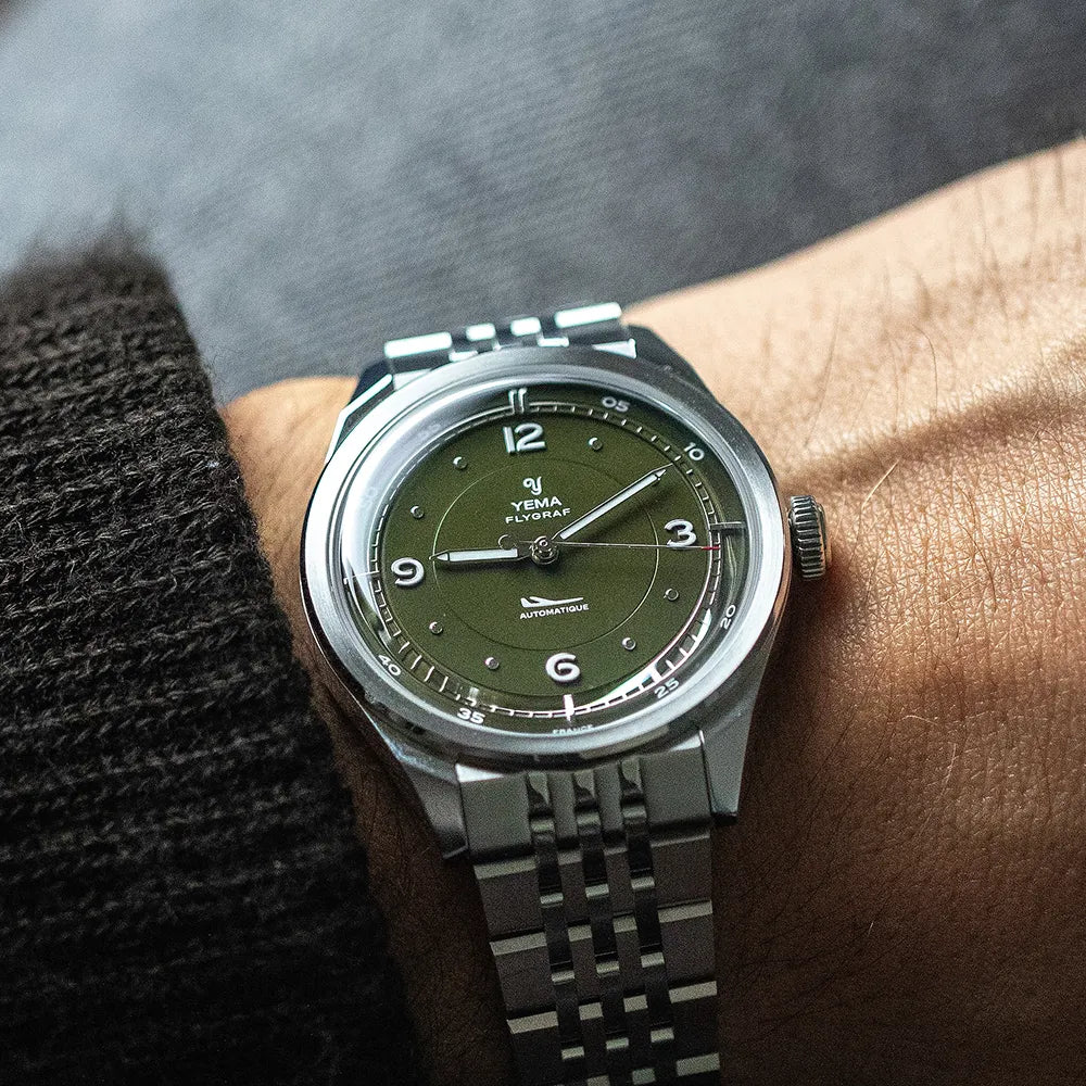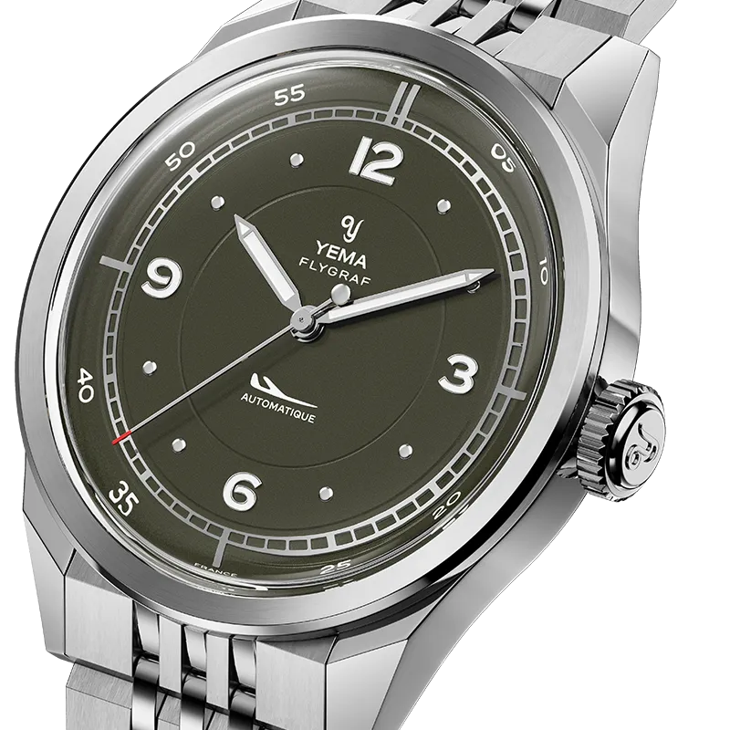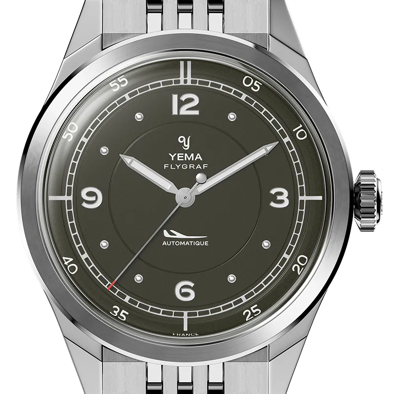 Available in two distinct dial colours, the new Flygraf Pilot is a neo-vintage reinterpretation of YEMA’s iconic model, designed to capture the spirit of aviation while offering a refined presence on the wrist. Its distinctive case underscores the watch’s retro character, while the carefully balanced sector dial enhances legibility and pays tribute to classic 1930s and 1940s aviation timepieces. Equipped with a Sellita SW200 movement and paired with a robust multi-link stainless steel bracelet, this new Flygraf Pilot combines heritage-inspired design with modern technical precision, reaffirming YEMA’s unique place in neo-vintage (tool)watchmaking.
