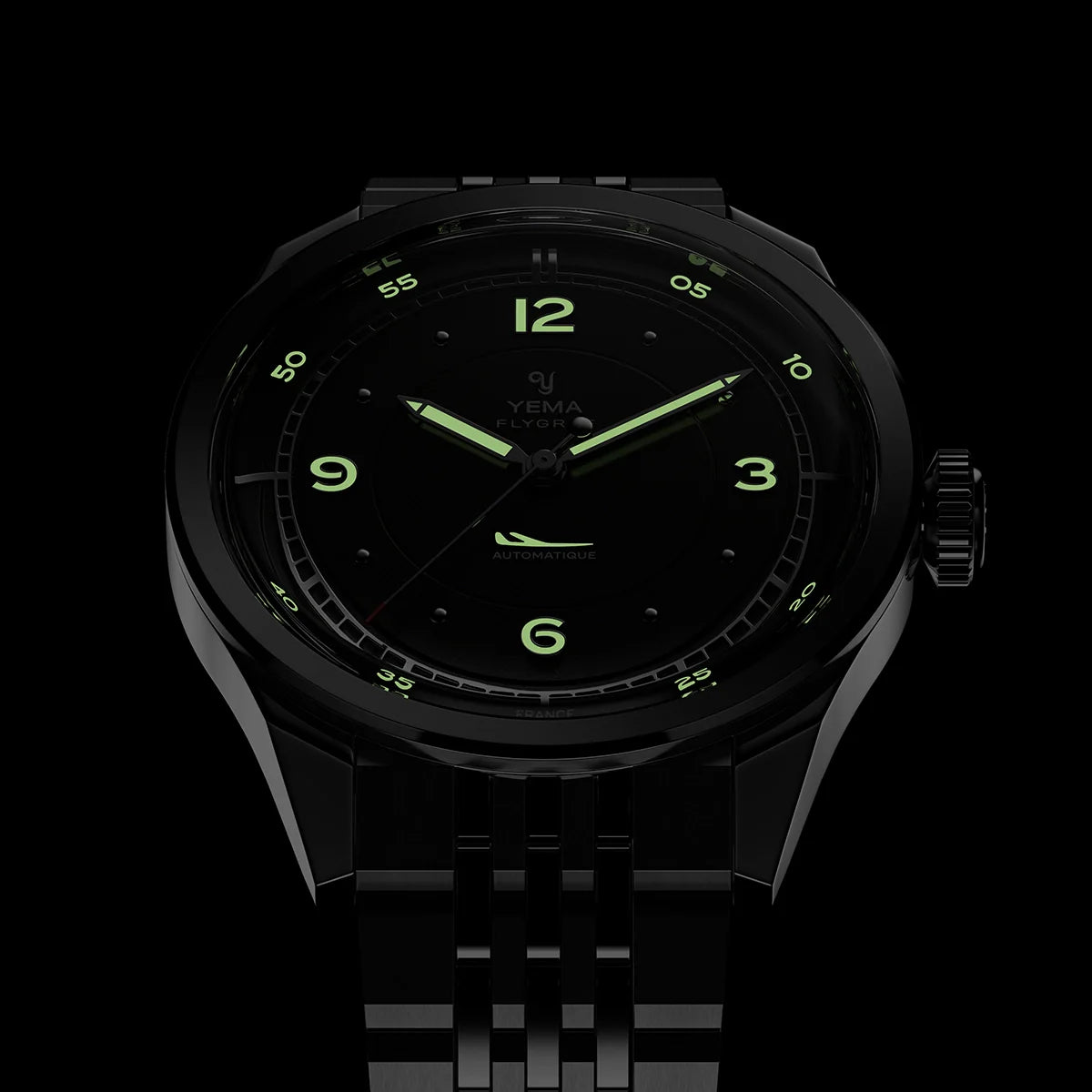 Gently tapering 3mm toward the clasp, the bracelet enhances comfort and balance on the wrist, giving the watch a more elegant profile without compromising its tool-watch character. The solid deployant clasp, engraved with YEMA’s emblem, ensures a secure fit and smooth adjustability.