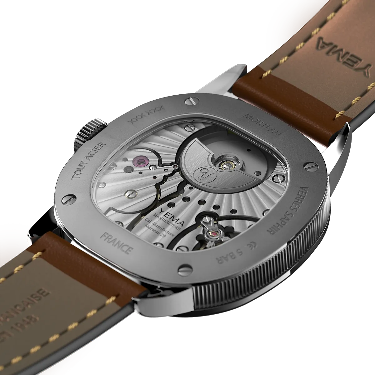 All movement components are manufactured in France and Switzerland within a range of 72km from Morteau by recognized craftsman in fine watchmaking. The caliber bridges and mainplates are manufactured in YEMA’s workshops in Morteau where final assembly of all components takes place.