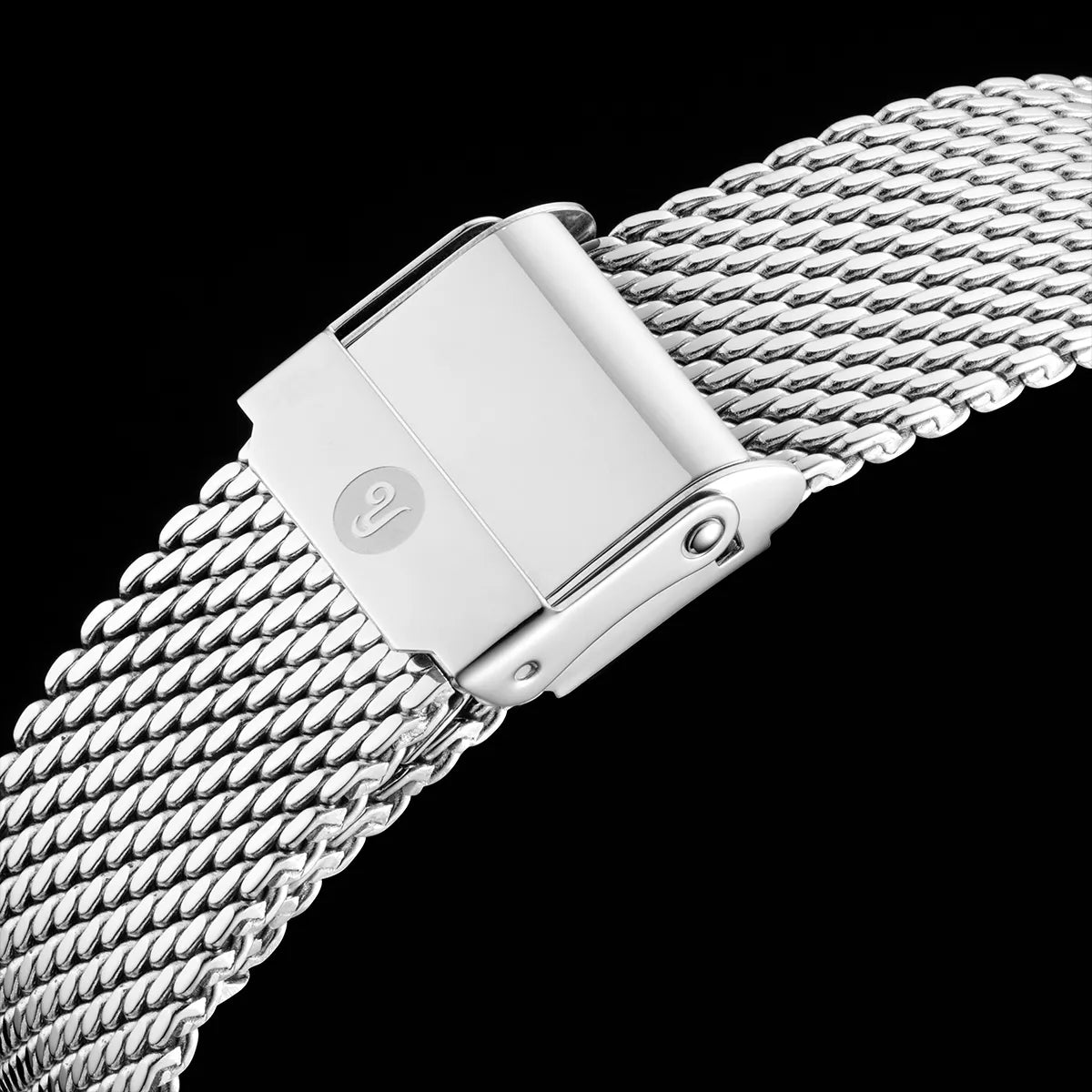 The steel mesh bracelet is made in Milanese mesh for greater flexibility and finesse. The clasp is engraved with YEMA's logo and it adjusts quickly and easily.