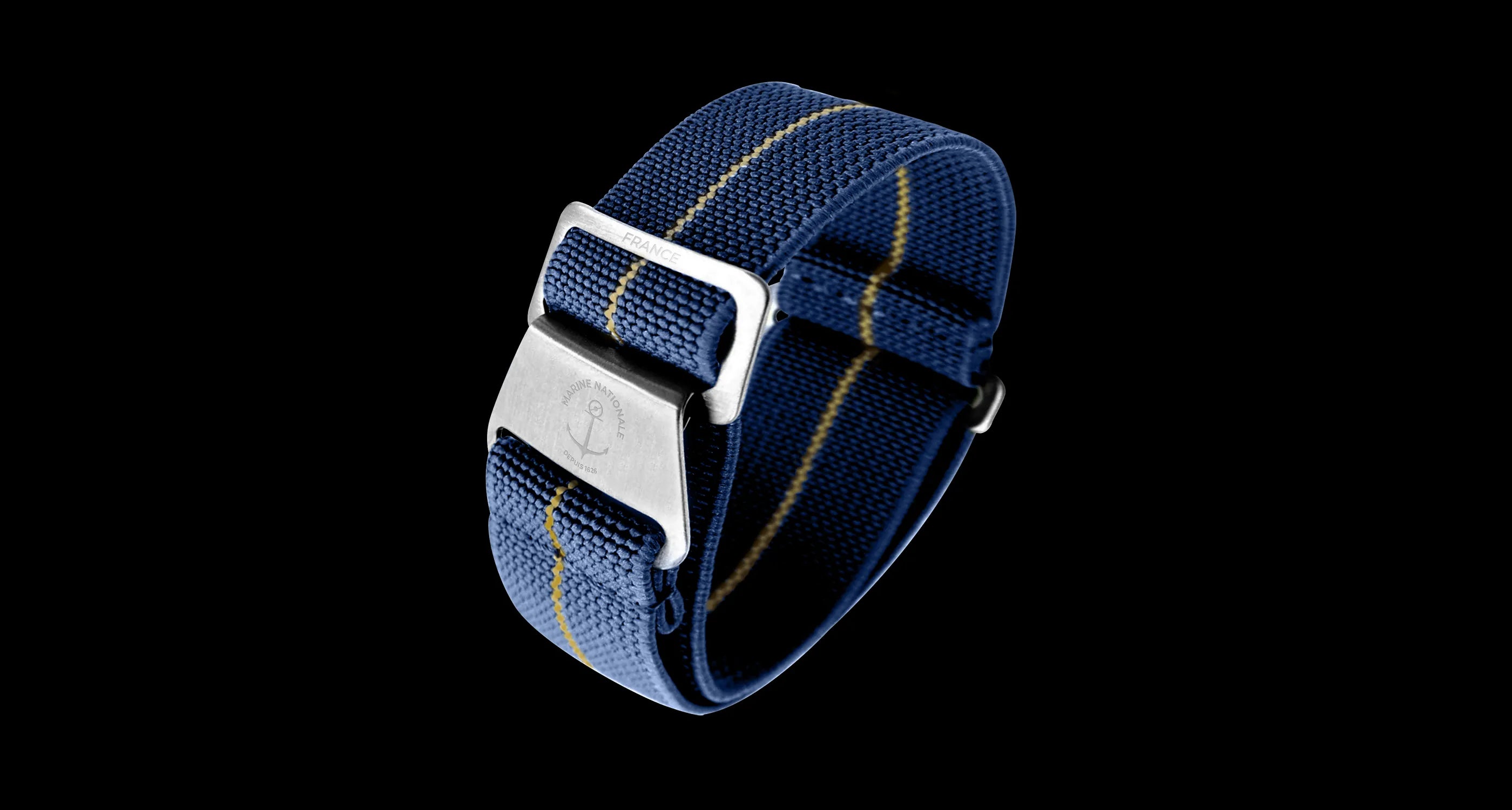 This iconic strap was originally handmade by French Marine Nationale combat divers in the 1970’s. The resourceful frogmen fashioned straps from used parachutes by recovering the elastic webbing to sew them back on and adapt them to their diver watches. For years, this type of strap has remained purely military, nowadays it’s a great alternative to NATO straps.