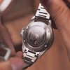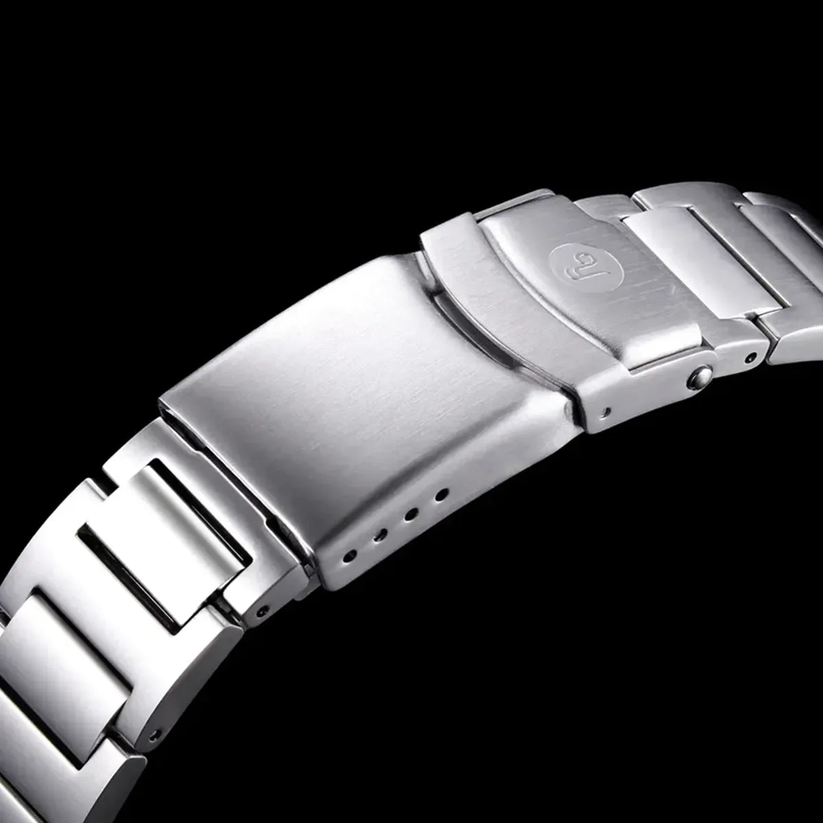 The 316L stainless steel bracelet with secure lock comes with a divers extension so it can be easily adjusted over a diving suit.