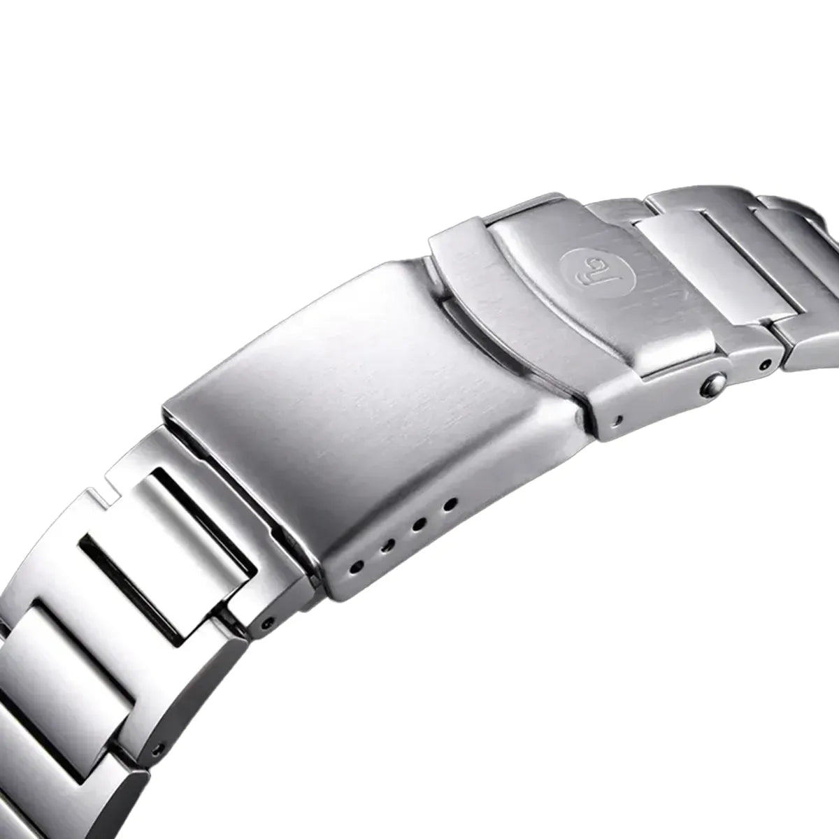 The 316L stainless steel bracelet with secure lock comes with a divers extension so it can be easily adjusted over a diving suit.