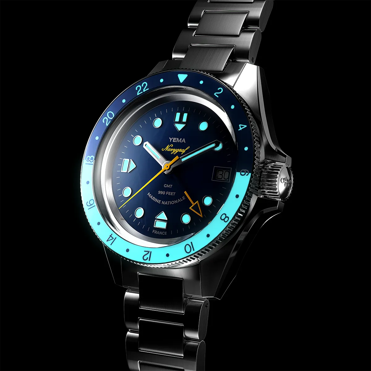 The second-generation GMT In-house Caliber YEMA3000 is powered by optimised components yielding slightly better performance than similar Standard Grade calibers, offering a Daily Rate of +/- 10 s/d and a power reserve of 42h.