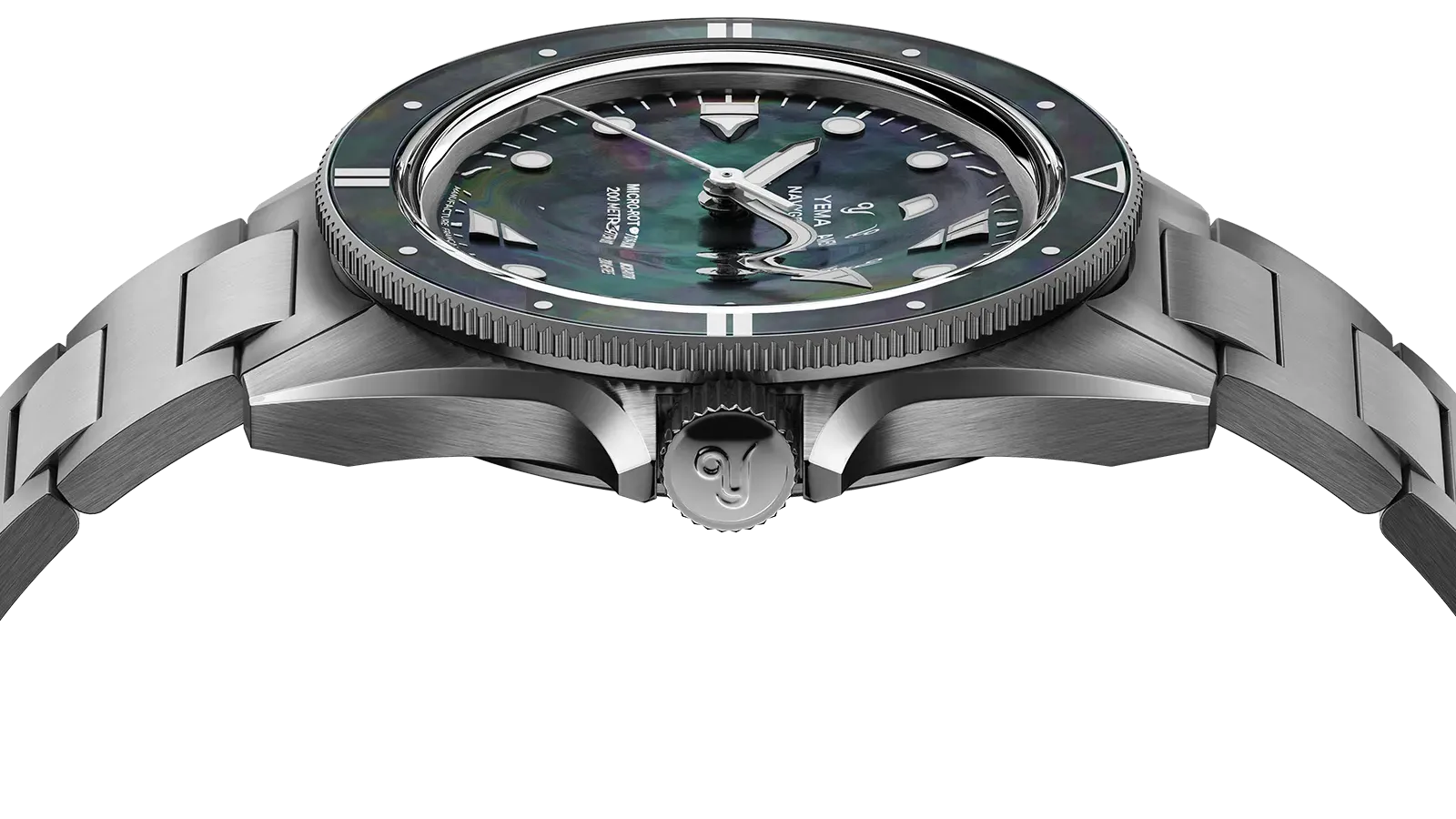 This versatile timepiece can accompany any fine attire and casual wear. Beyond its sporty-yet-elegant aesthetics, the Navygraf Pearl remains a professional dive watch offering unparalleled reliability.