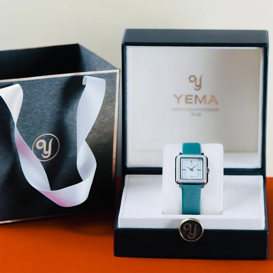 Each watch comes in a YEMA box with a 2-year international warranty card made in leather and a ribboned YEMA bag, perfect for a gift.
