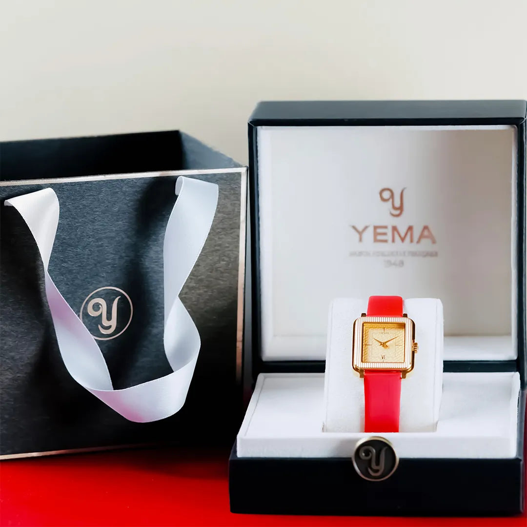 Each watch comes in a YEMA box with a 2-year international warranty card made in leather and a ribboned YEMA bag, perfect for a gift.