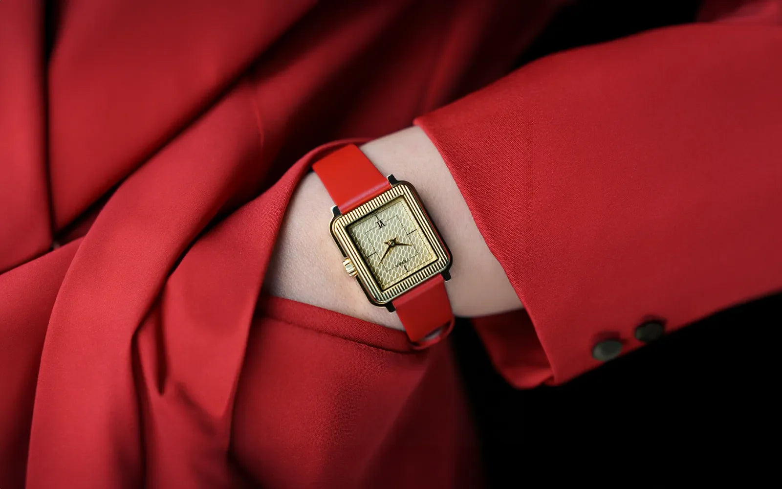 A timeless blend of elegance and craftsmanship, the Radiance women's watch exudes grace and refinement. It features a gold-tone steel case adorned with a honeycomb-patterned dial and gold-tone faceted hands. Sapphire crystal. Case dimensions: 24 mm x 30 mm, thickness: 6.3 mm. Water-resistant up to 3 bars (~30 meters).