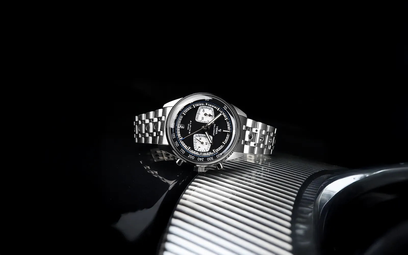 The instantly recognisable design of the chronograph's hour and minute sub-registers inspires by vintage race car dashboards, a design popular among watch enthusiasts and collectors. The panda / reverse panda sub-registers stand out in stark contrast to the main dial colour.