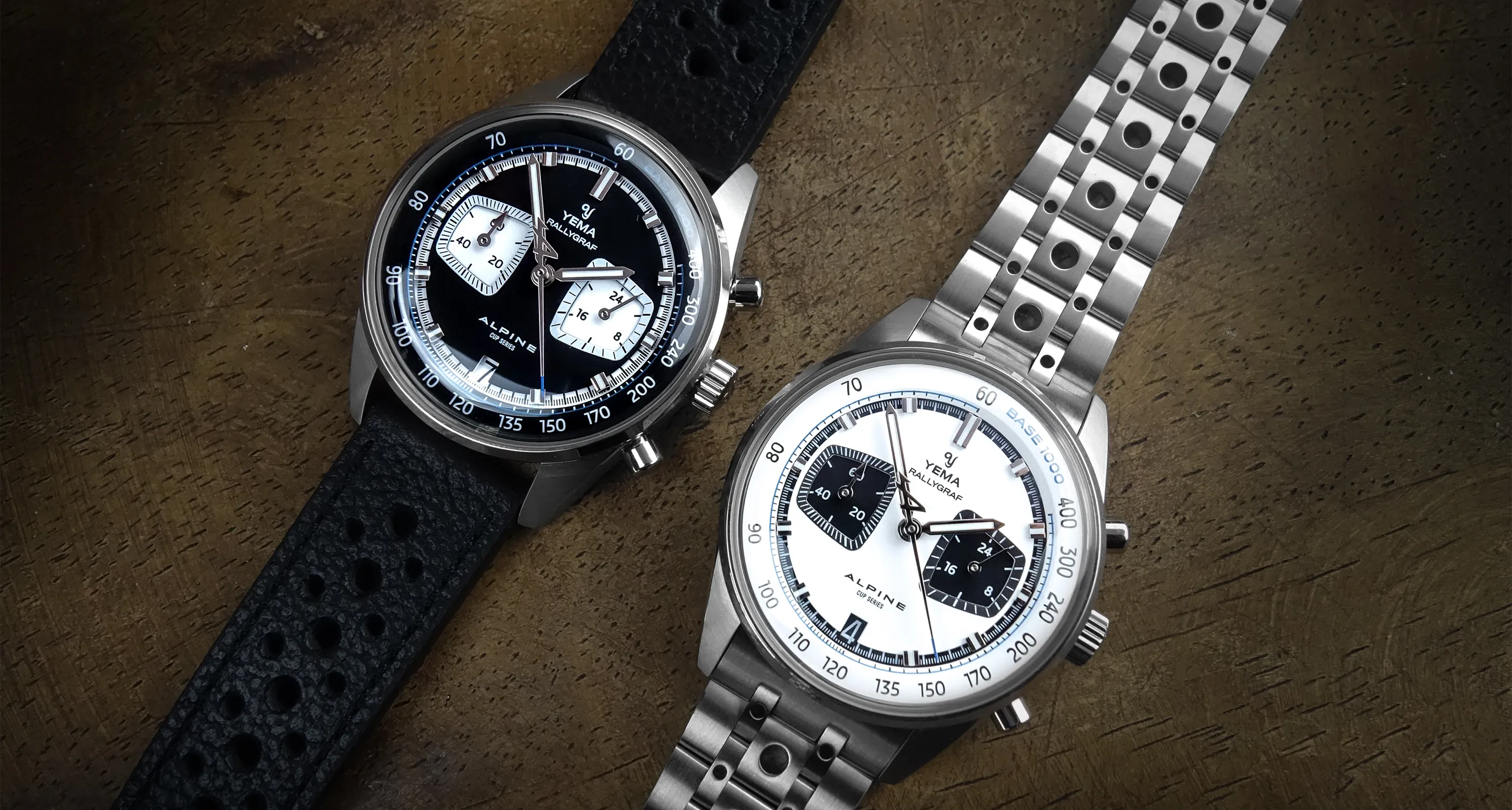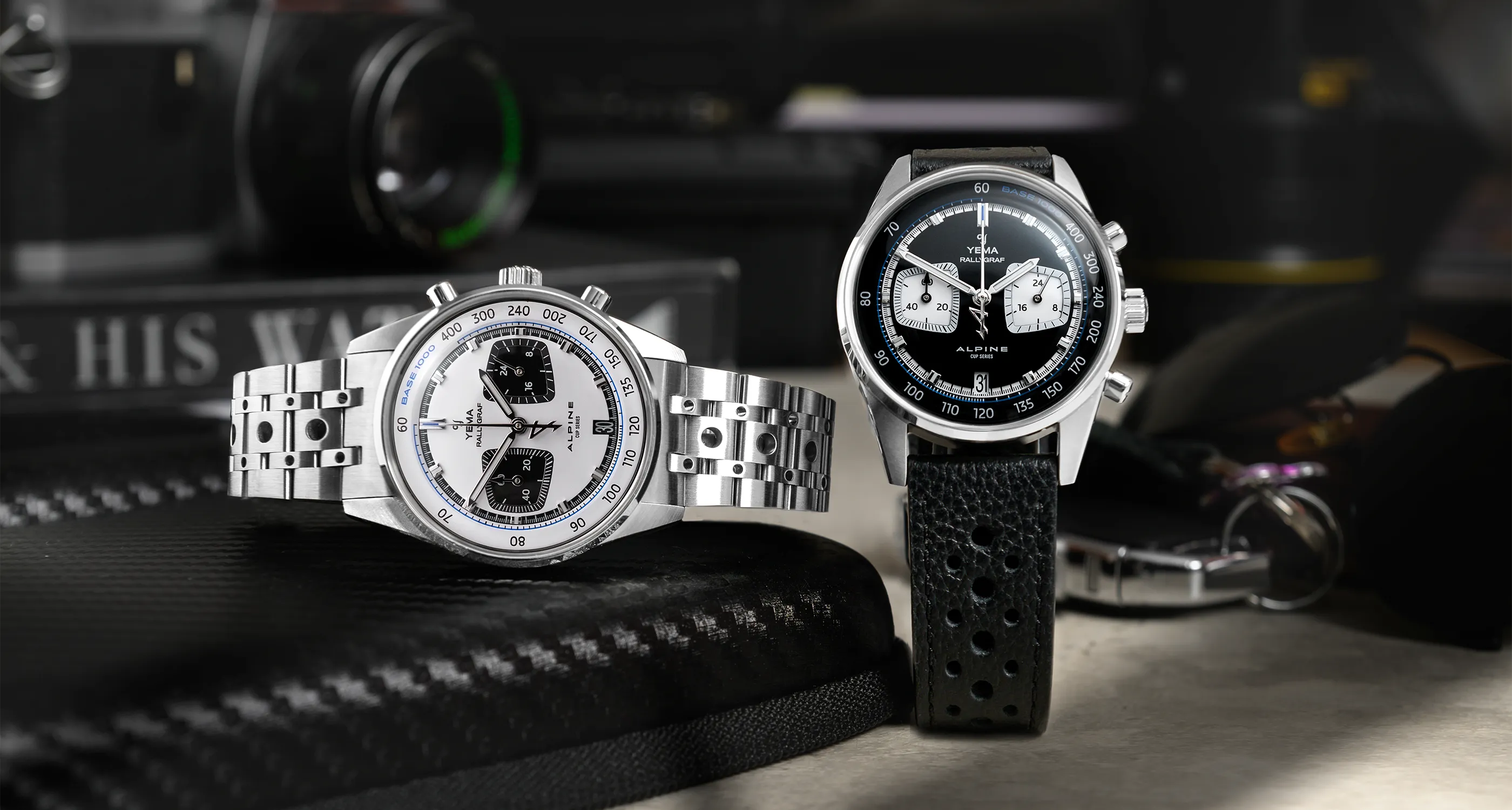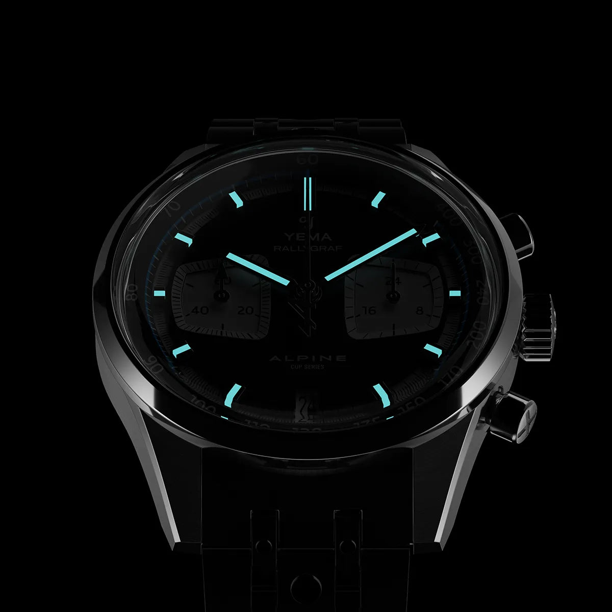 As the Official Timekeeper of the Alpine Elf Cup Series championship, YEMA proudly unveils two special Rallygraf chronographs designed in tribute to Alpine’s legendary racing spirit. These exclusive editions are equipped with the reliable Seiko VK64 mecha-quartz caliber and a distinctive internal tachymeter chapter ring, while the one-of-a-kind Rally steel bracelet completes the design with a bold aesthetic evoking the raw elegance of vintage motorsport. More than just timepieces, they are a tribute to speed, passion, and French racing heritage.