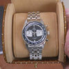 The time functions of Seiko's VK64 hybrid movement are powered by a quartz caliber while the chronograph's function is controlled by a mechanical module which results in a smooth sweeping second-hand movement.