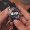 This new edition is a contemporary take on YEMA’s legendary motorsports chronograph worn by legends like Mario Andretti. It features a completely redesigned steel case, block pushers and a textured dial reminiscent of vintage race car dashboards. The date, time and chronograph functions are powered by Seiko's VK64 hybrid caliber.
