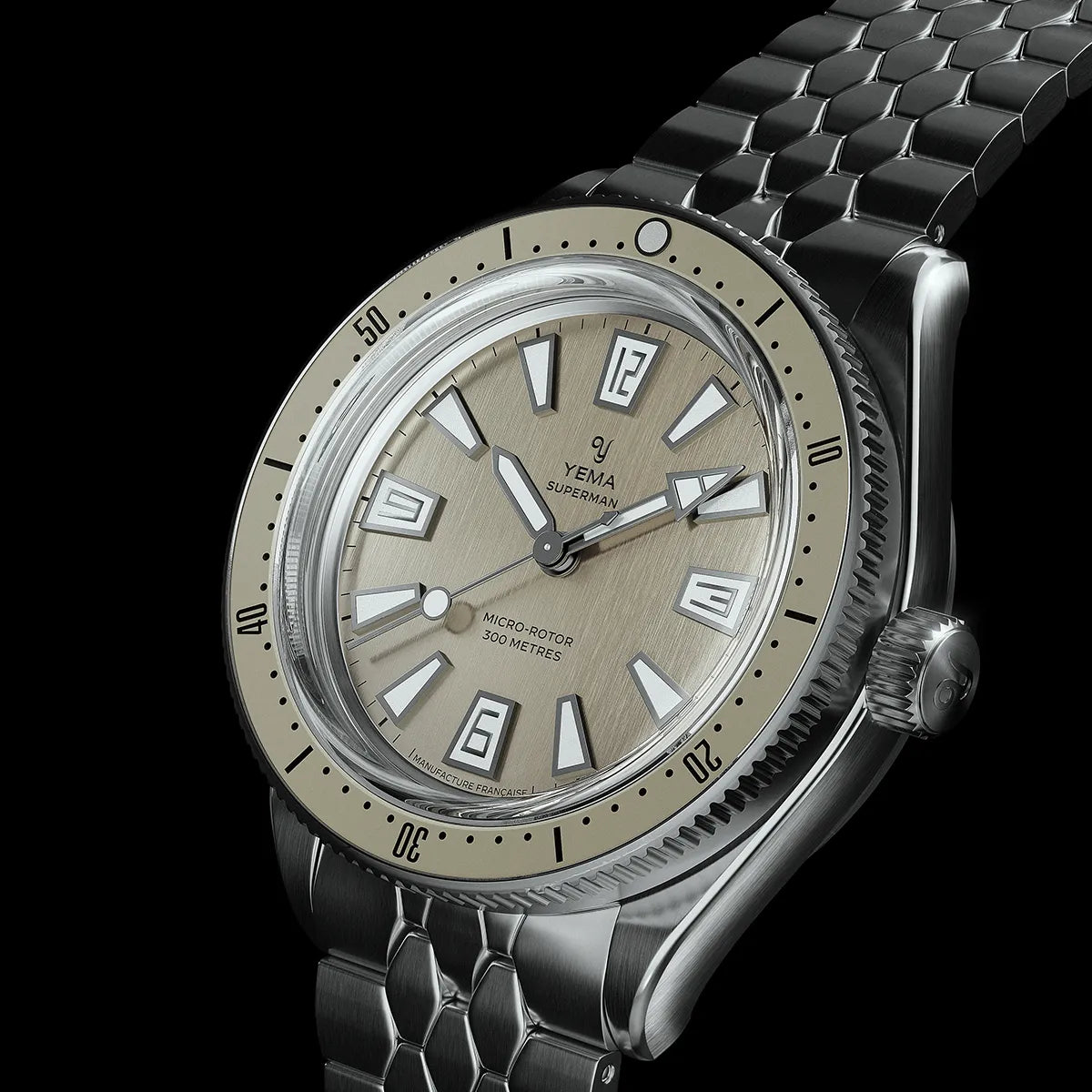 The iconic 1960s YEMA Scales bracelet has been slimmed down by 0.40mm so as to harmoniously integrate with the Skin Diver.