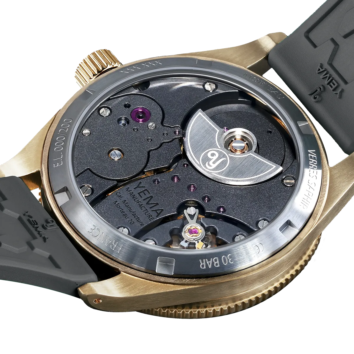 Supercharged with our micro-rotor Manufacture caliber, the Skin Diver Slim Bronze CMM.20 Limited Edition is the modern interpretation of the iconic skin divers released by YEMA in the 1960’s. Rugged, yet stylish.
