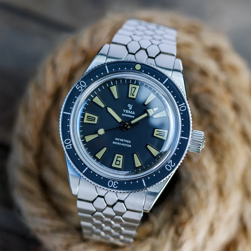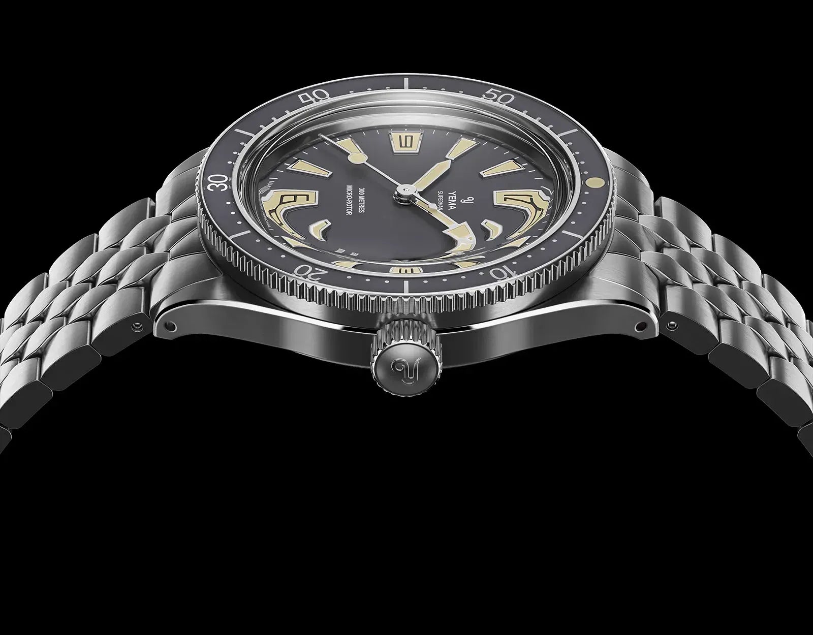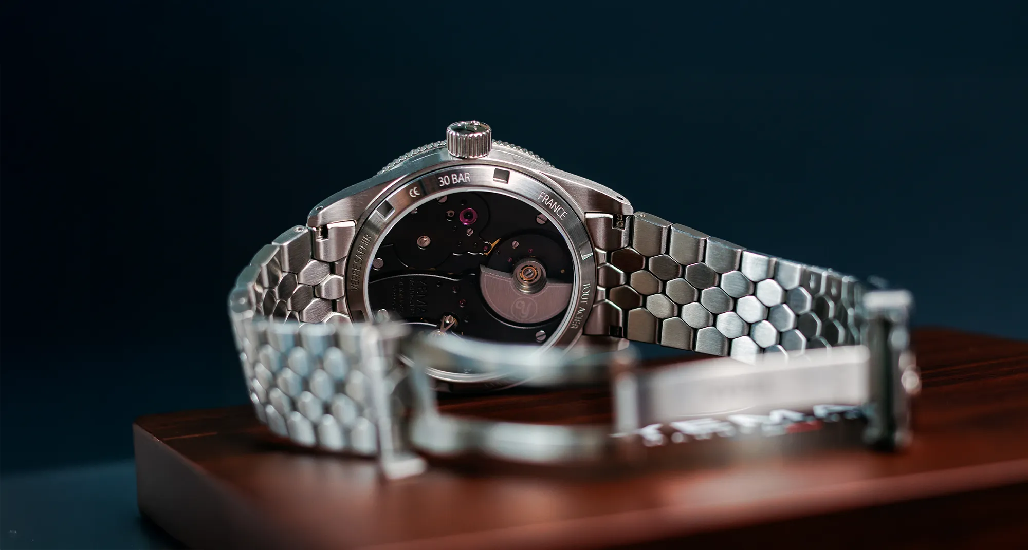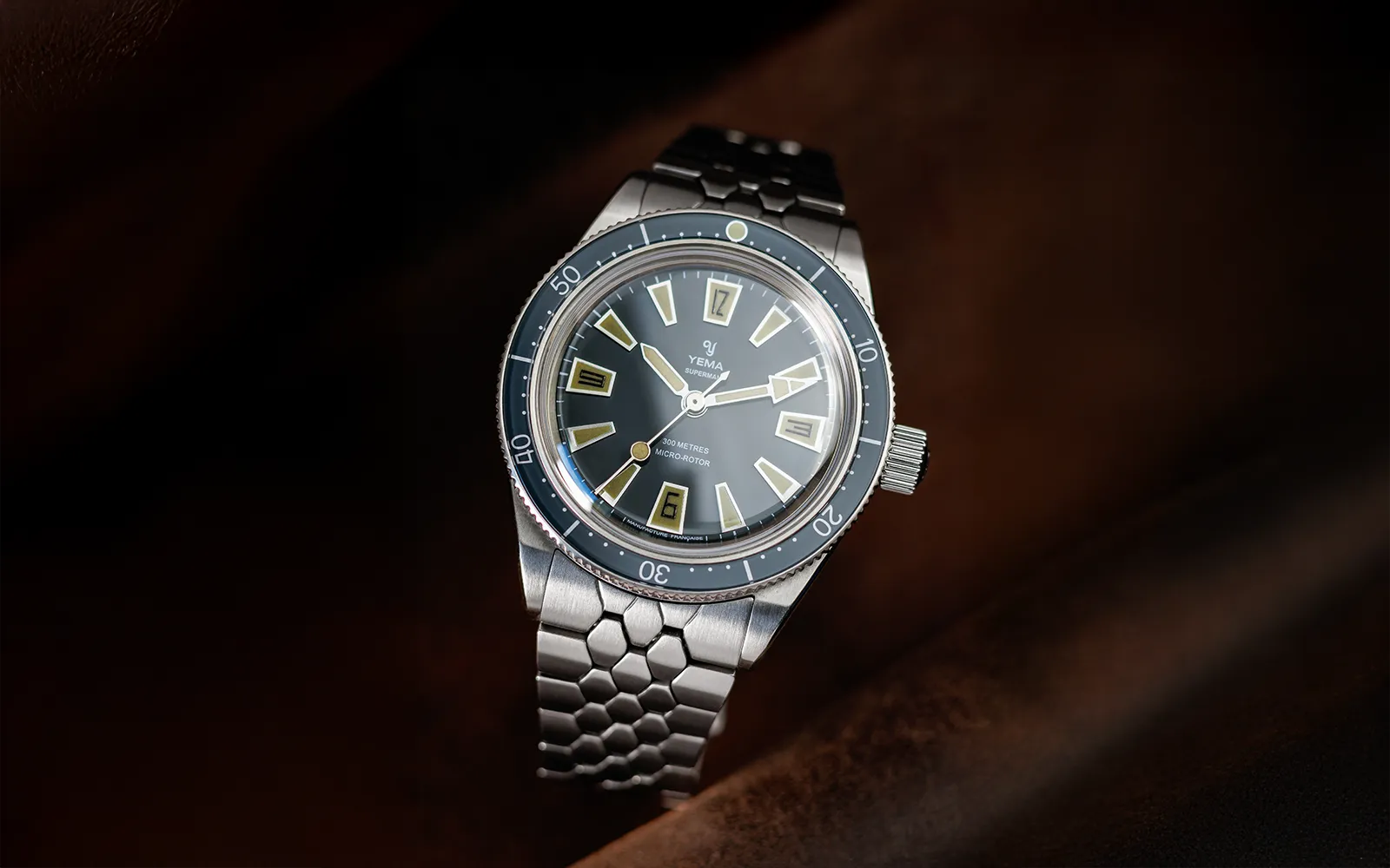 The iconic 1960s YEMA Scales bracelet has been slimmed down by 0.40mm so as to harmoniously integrate with the Skin Diver Slim thin case.