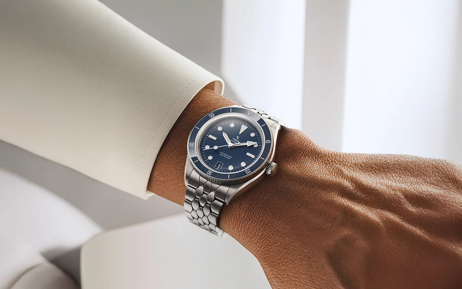 The iconic 1960s YEMA Scales bracelet has been slimmed down by 0.40mm and now it gradually tapers from 4mm at the buckle and naturally adapts to each wrist's shape. It features a fully brushed finish, providing an elegant visual continuity with the brushed steel case.