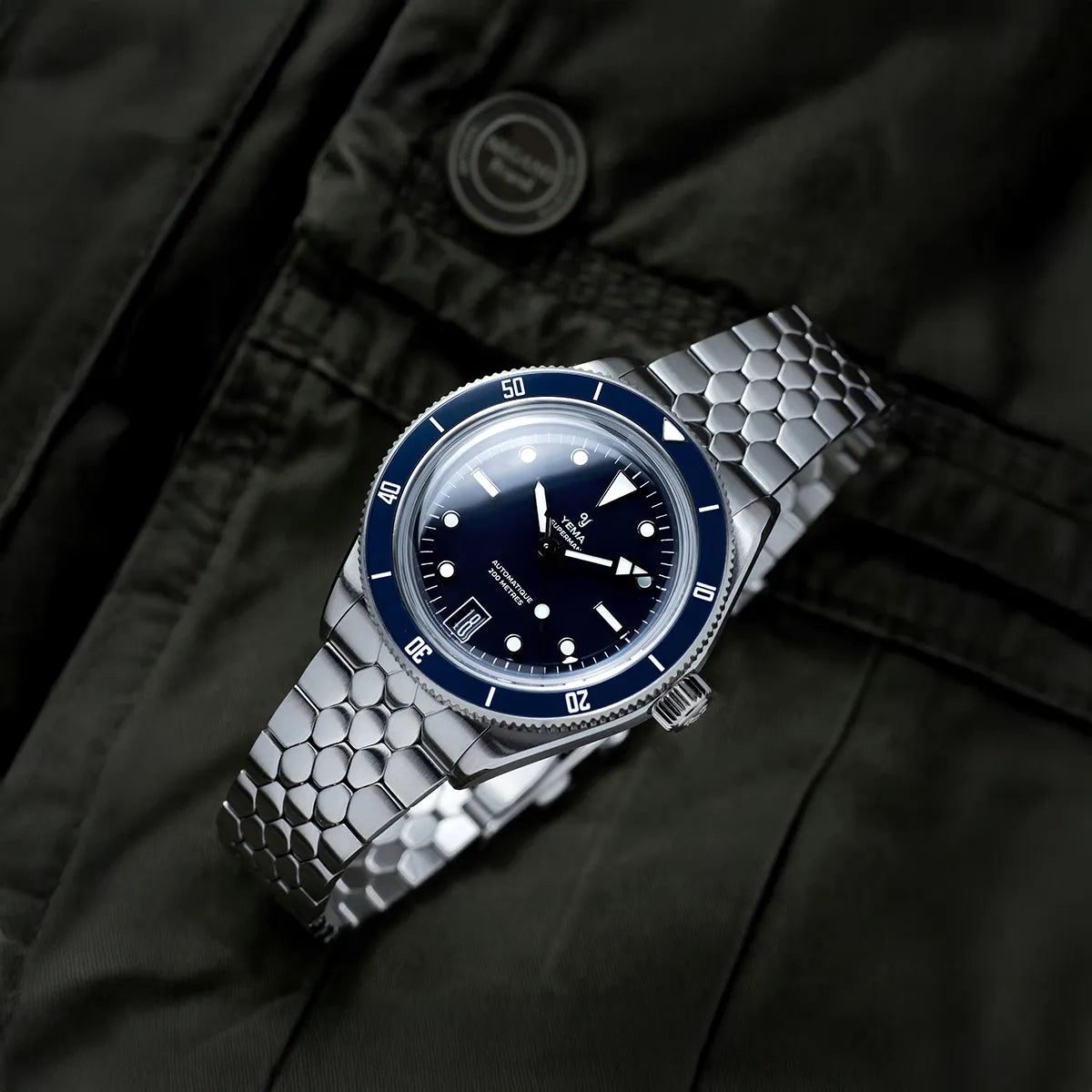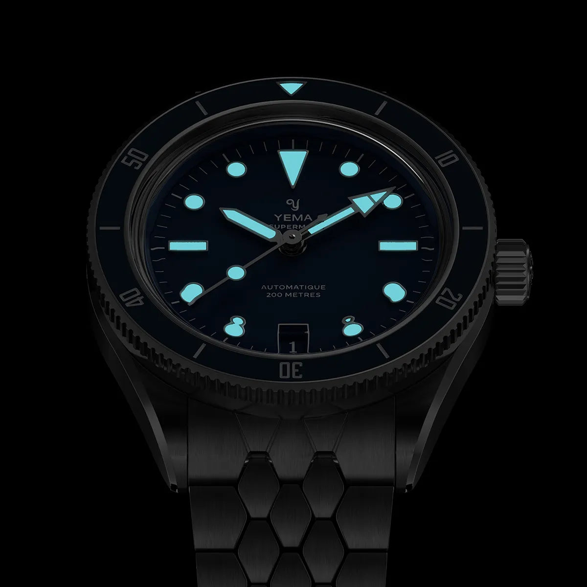 The hour markers, hands and the dive bezel’s pip are abundantly treated with Grade A Super-LumiNova so as to enhance visibility in low-light conditions.