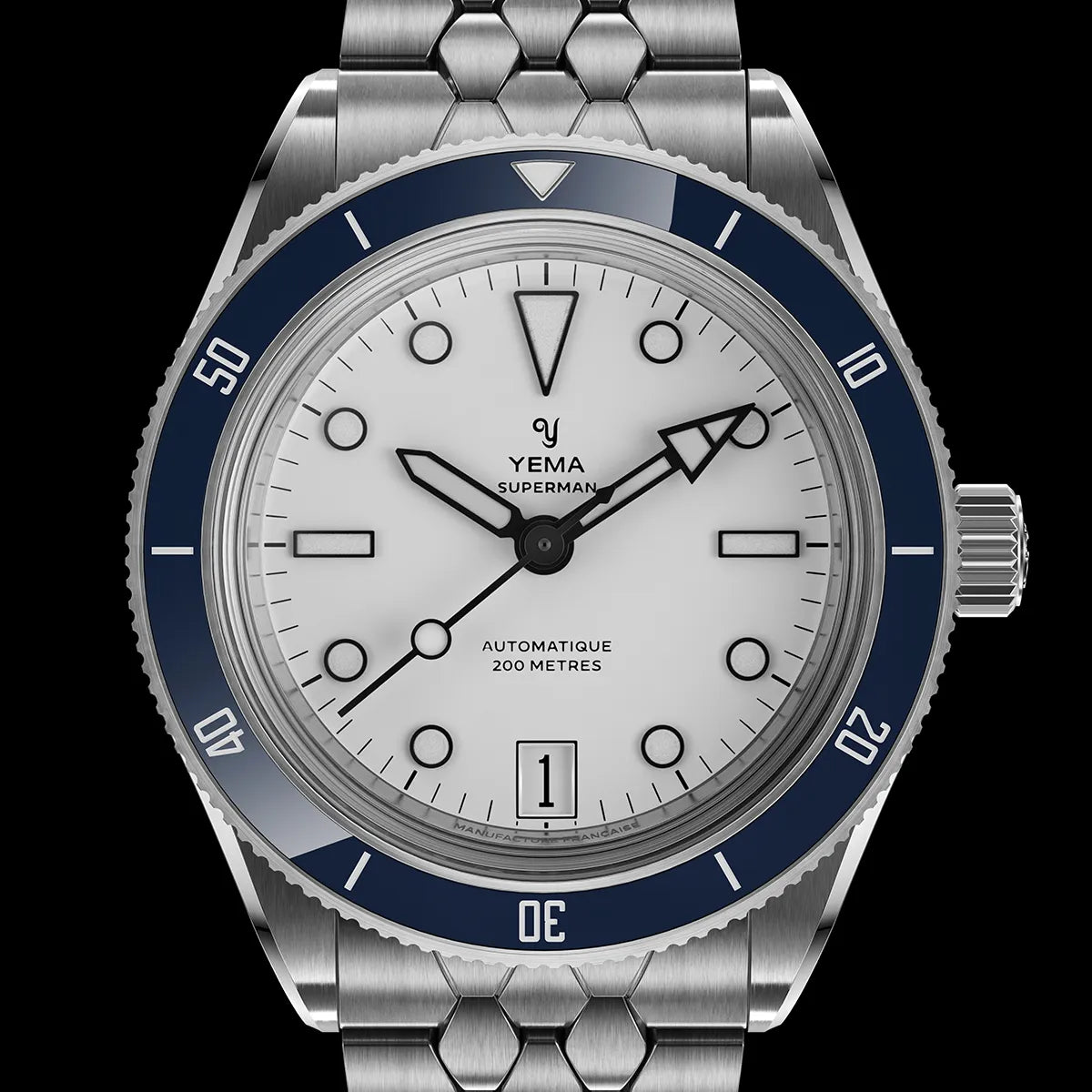 The iconic Superman case has been carefully reimagined with a more streamlined profile. The new stainless steel case, available in 39.5mm and 41mm features a clean, crown-guard-free design, a purer, more symmetrical silhouette.