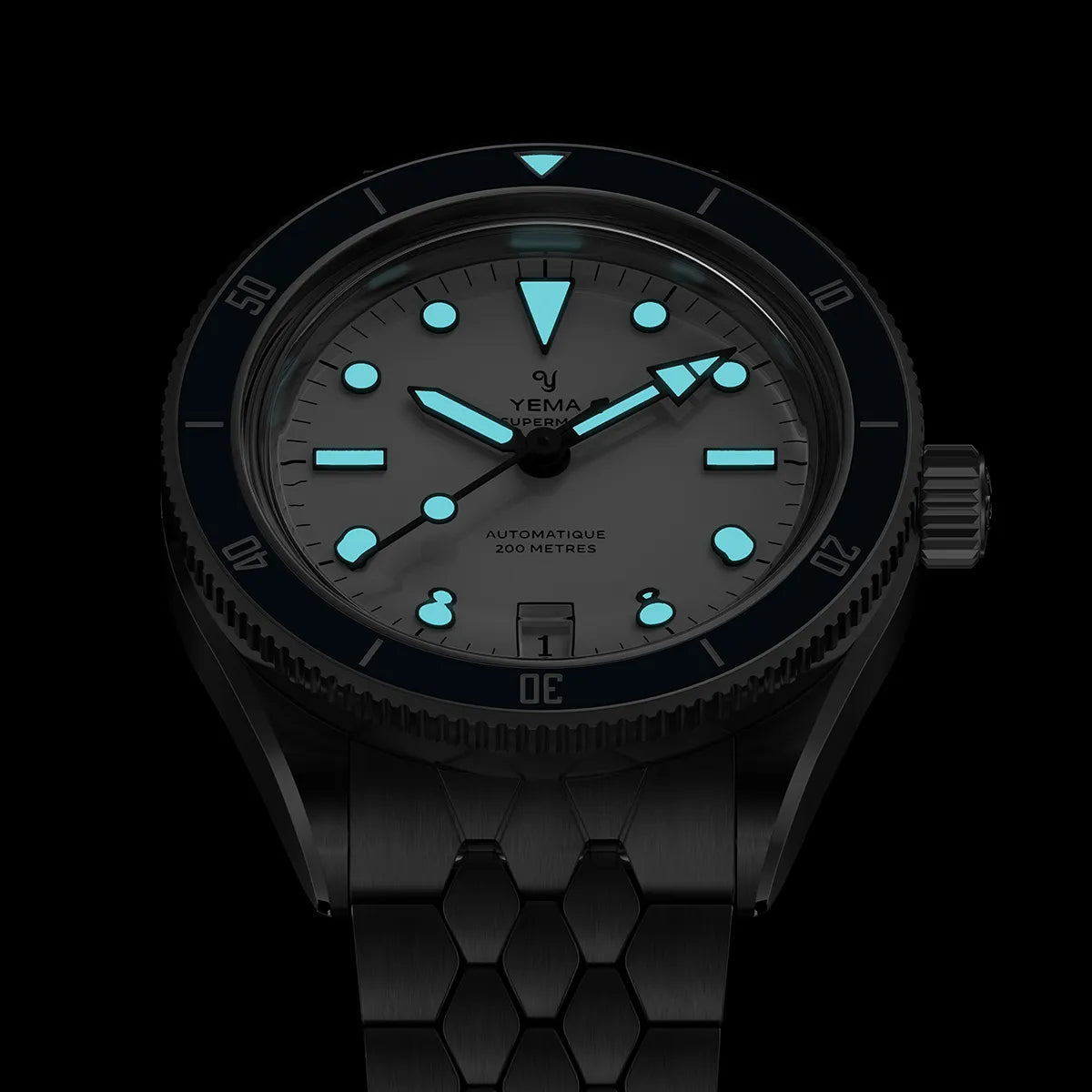 The hour markers, hands and the dive bezel’s pip are abundantly treated with Grade A Super-LumiNova so as to enhance visibility in low-light conditions.