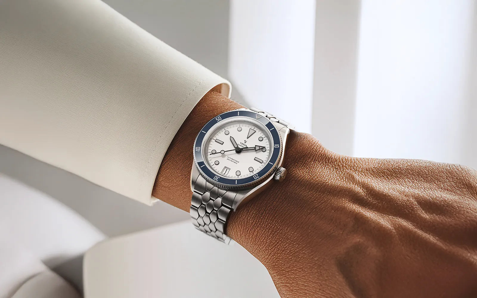 The iconic 1960s YEMA Scales bracelet has been slimmed down by 0.40mm and now it gradually tapers from 4mm at the buckle and naturally adapts to each wrist's shape. It features a fully brushed finish, providing an elegant visual continuity with the brushed steel case.