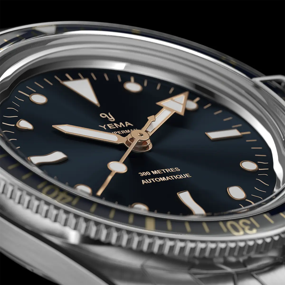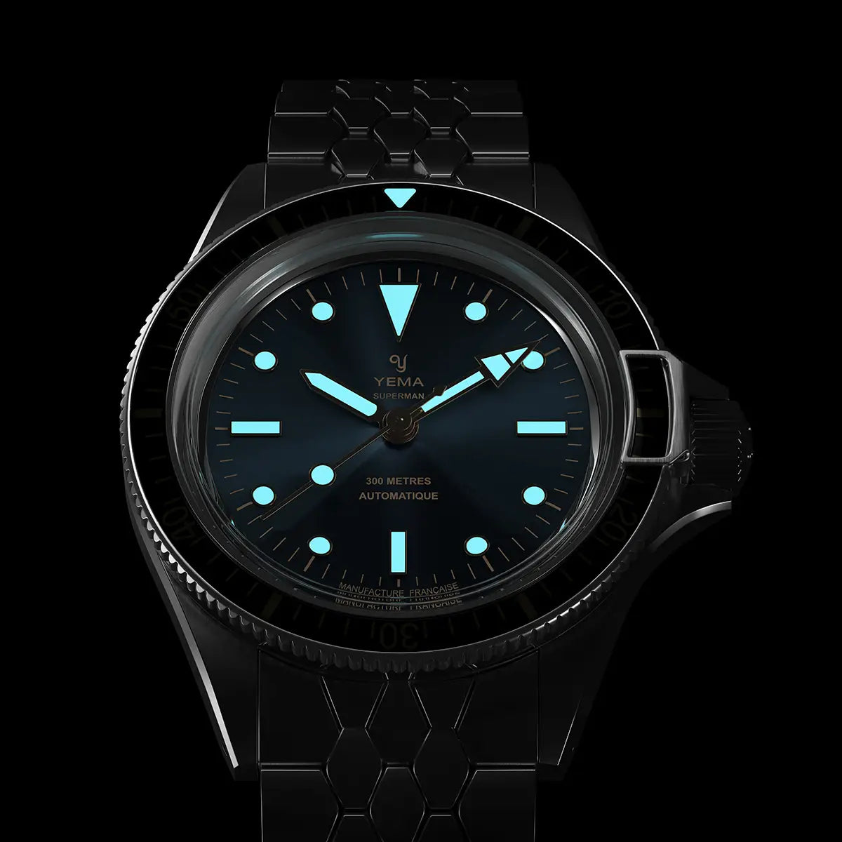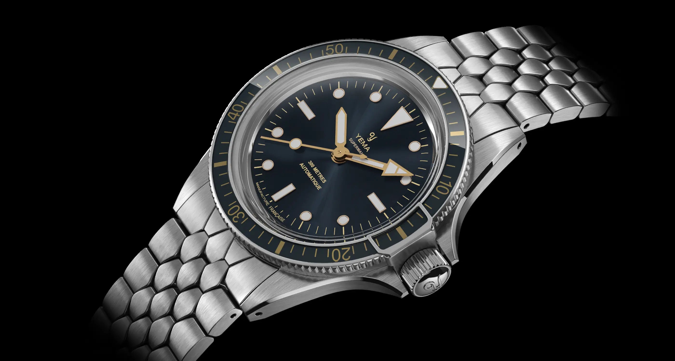 The iconic 1960s YEMA Scales bracelet has been slimmed down by 0.40mm so as to harmoniously integrate with the Superman CMM.10 refined cases.