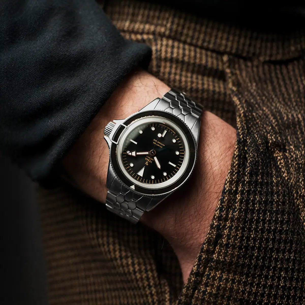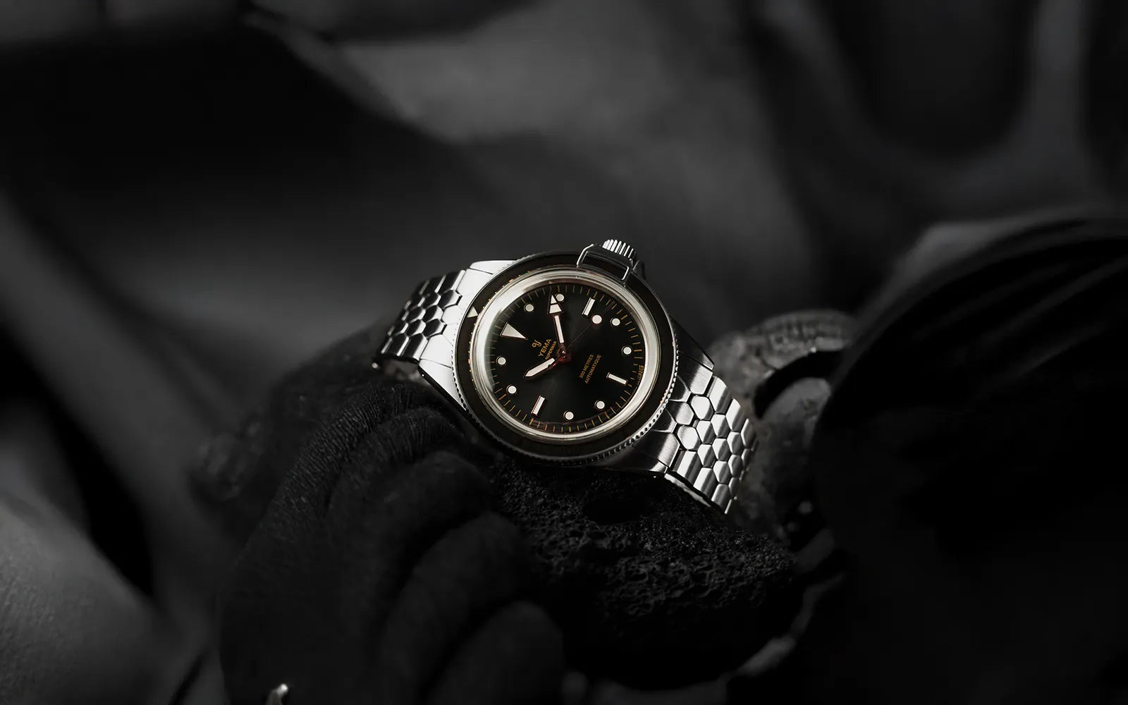 This new case also distinguishes by its elegant brushed surfaces with bevelled edges, mirror-polished for a striking contrast, preserving an unique neo-vintage appearance with all the advantages and functions of modern mechanical diving watches.