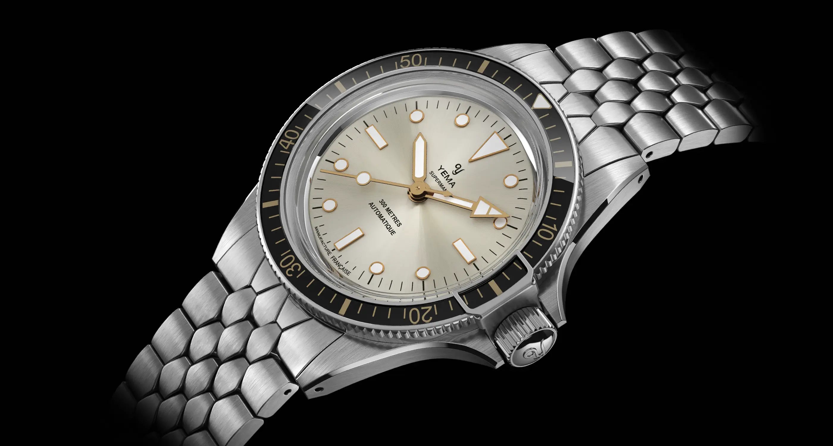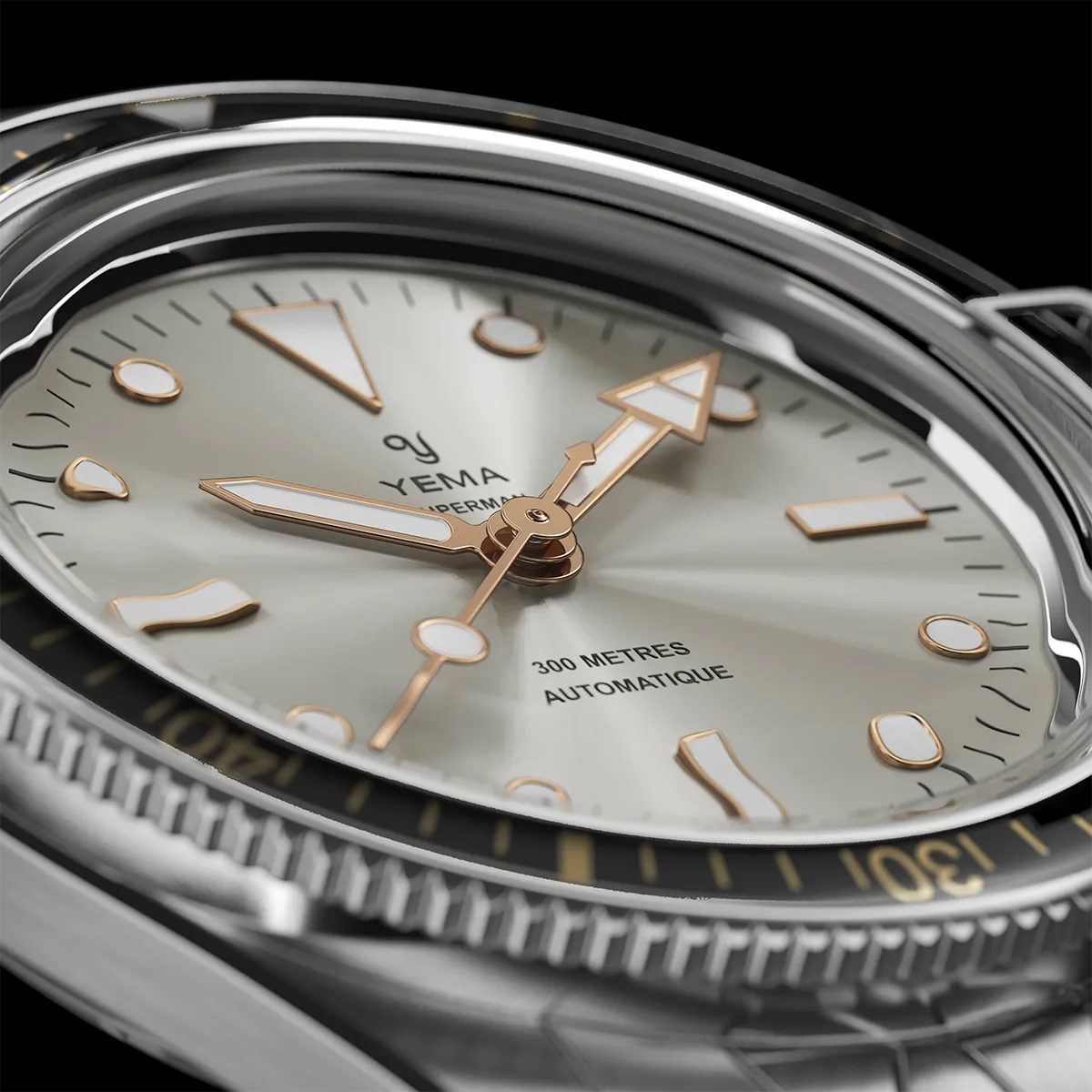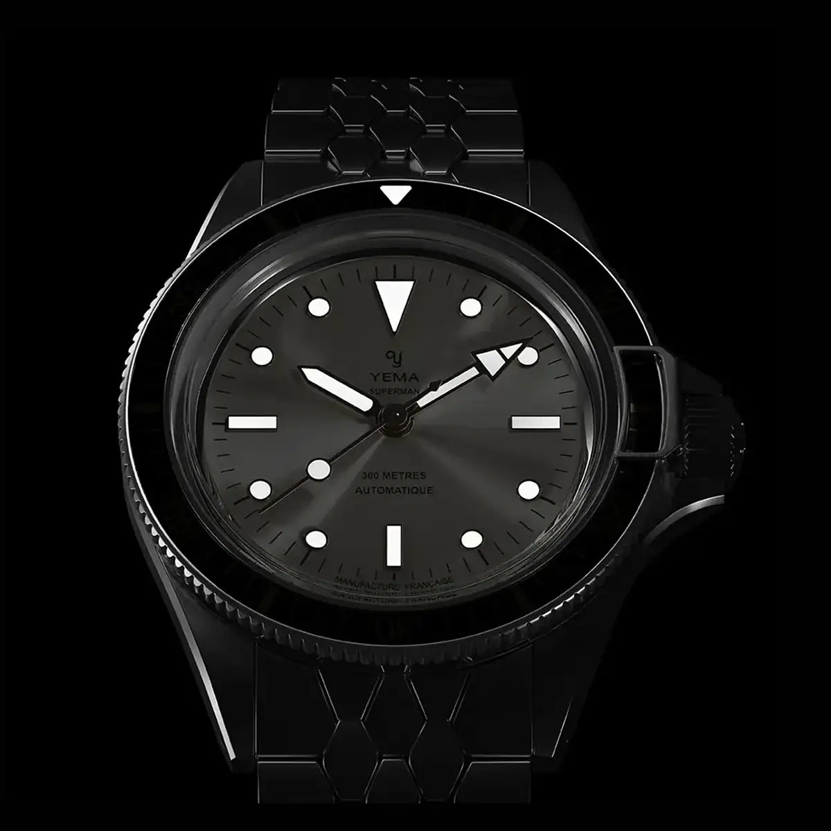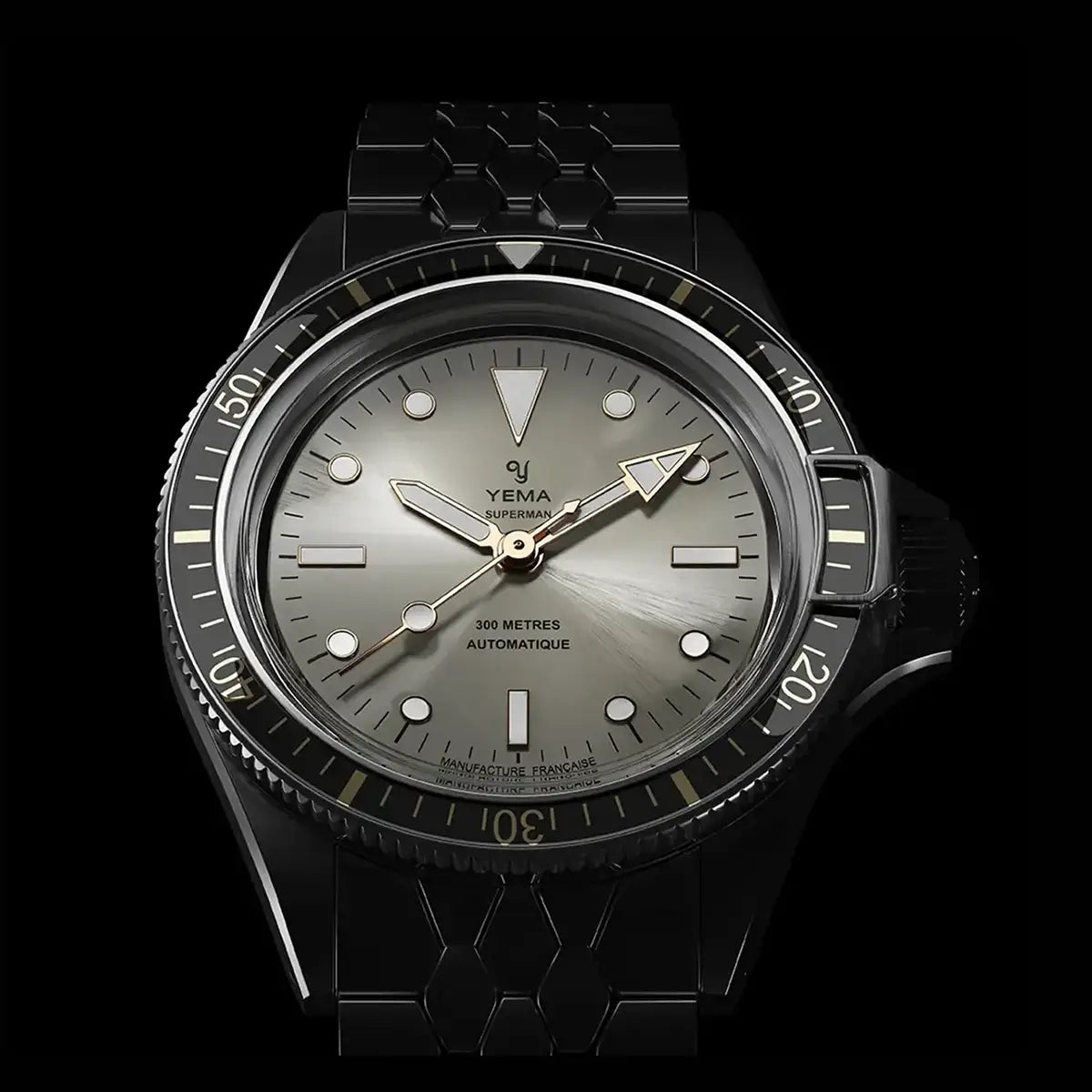 The iconic 1960s YEMA Scales bracelet has been slimmed down by 0.40mm so as to harmoniously integrate with the Superman CMM.10 refined cases.