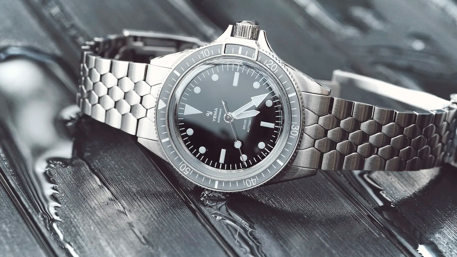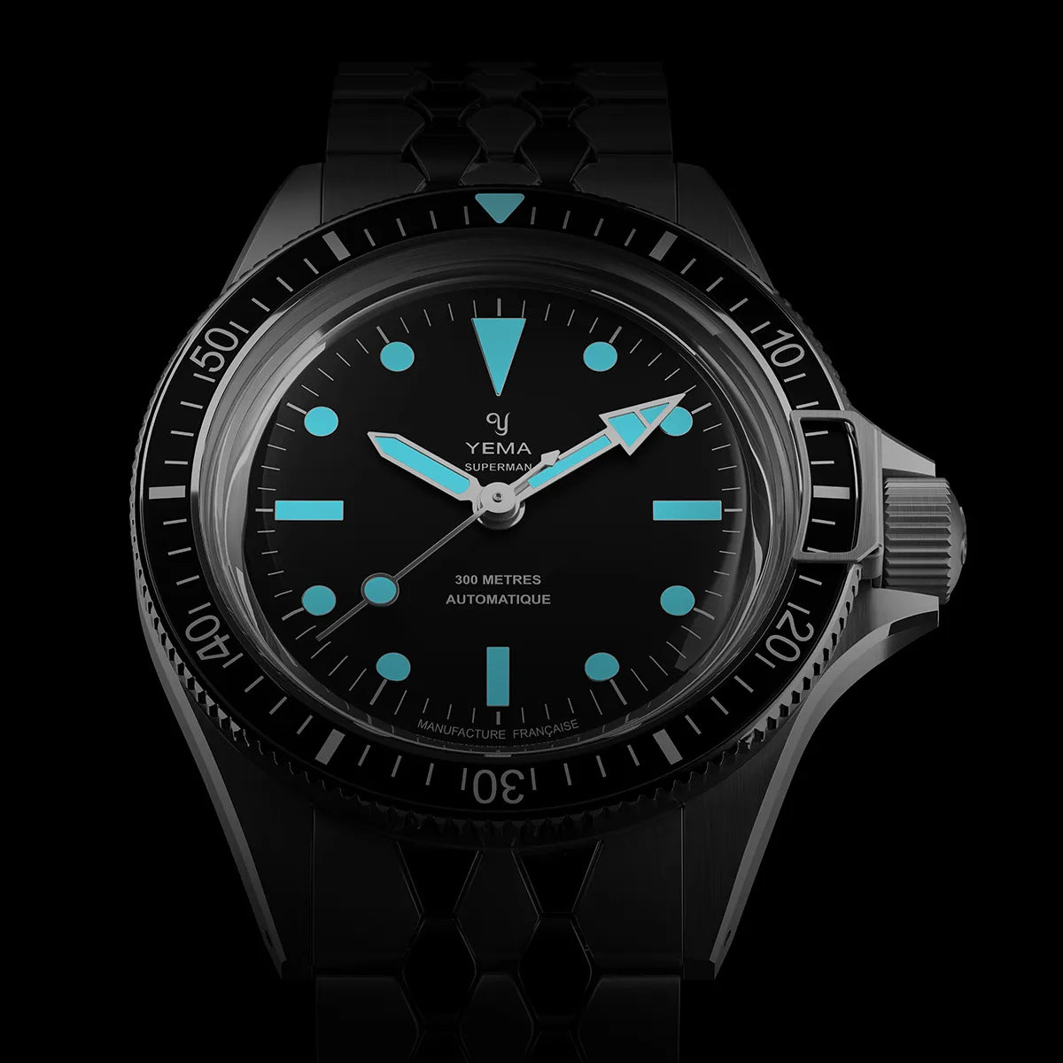 The iconic 1960s YEMA Scales bracelet has been slimmed down by 0.40mm so as to harmoniously integrate with the Superman Steel CMM.10 refined case.