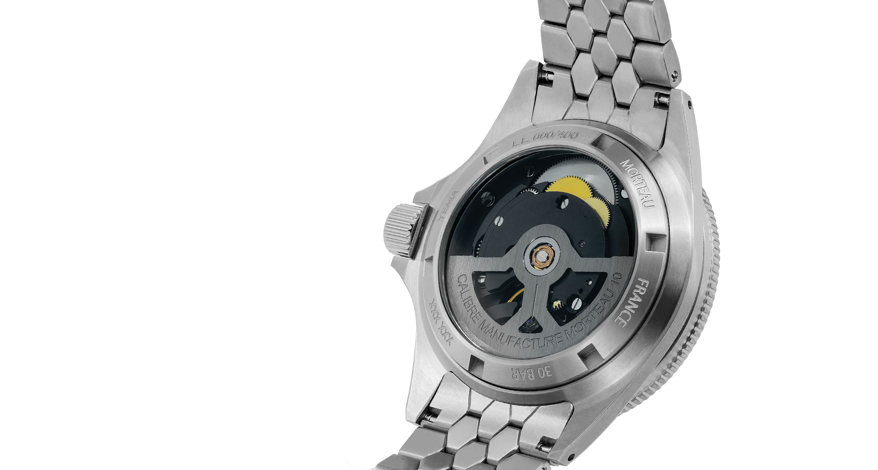 Premium mechanical in-house caliber designed and manufactured in our workshops in Morteau (France). All other components are sourced from Switzerland within a 70km radius of Morteau. Assemblies, calibrations and checks carried out by our watchmakers in our Morteau workshops.