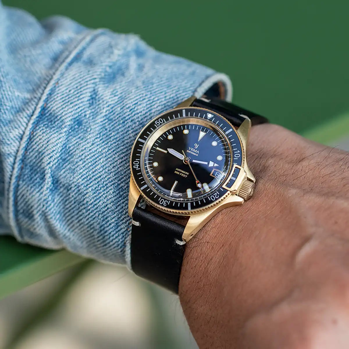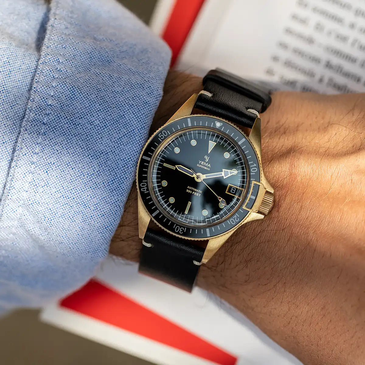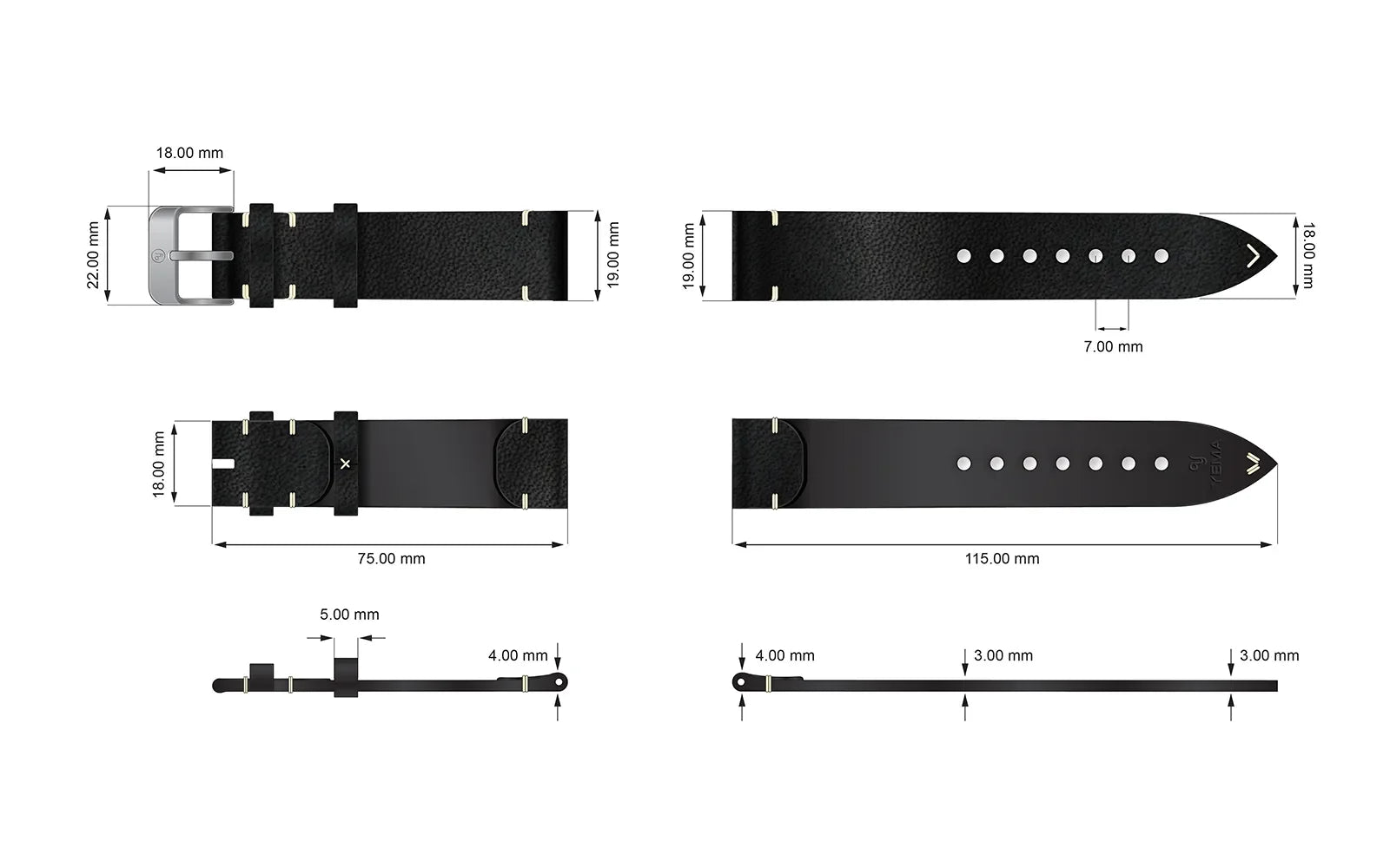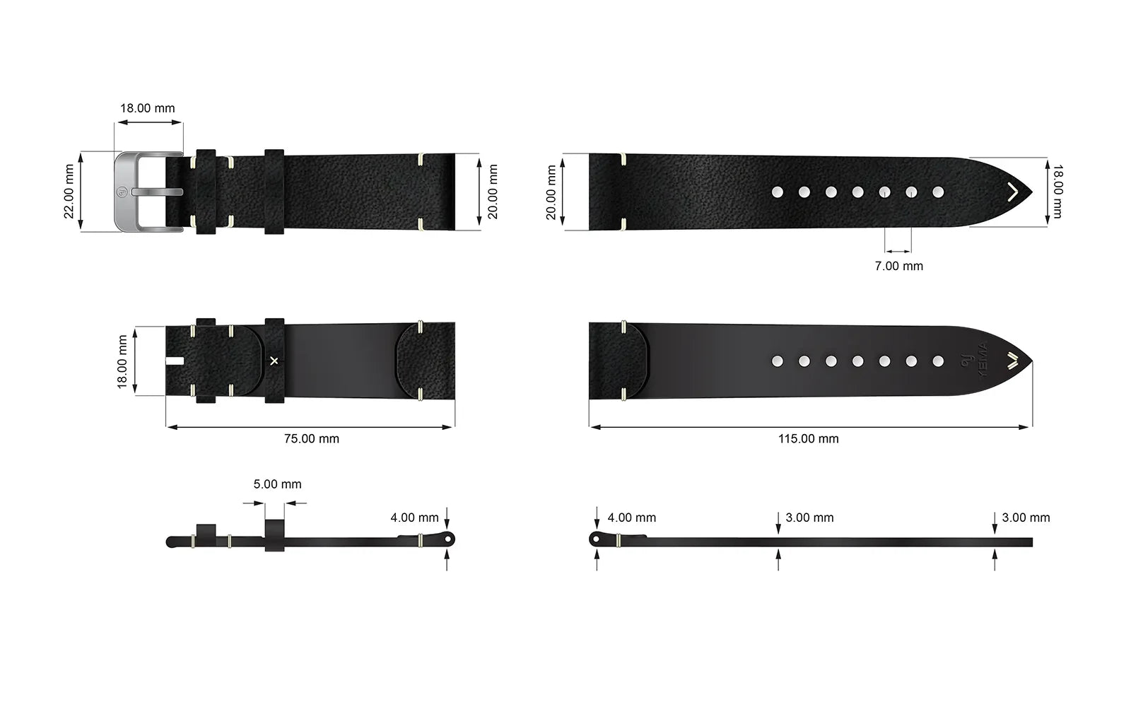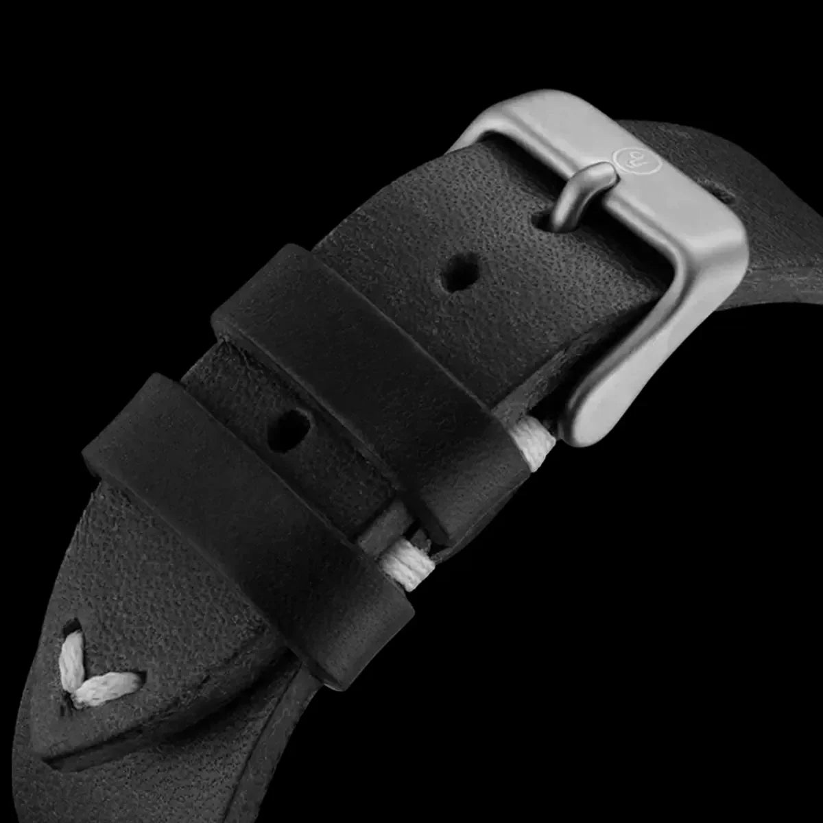 Made by a French manufacturer from our region (Franche Comté), our vintage leather straps with side stitches combine quality craftsmanship with a modern design and a slight degressive padding for ultimate comfort.