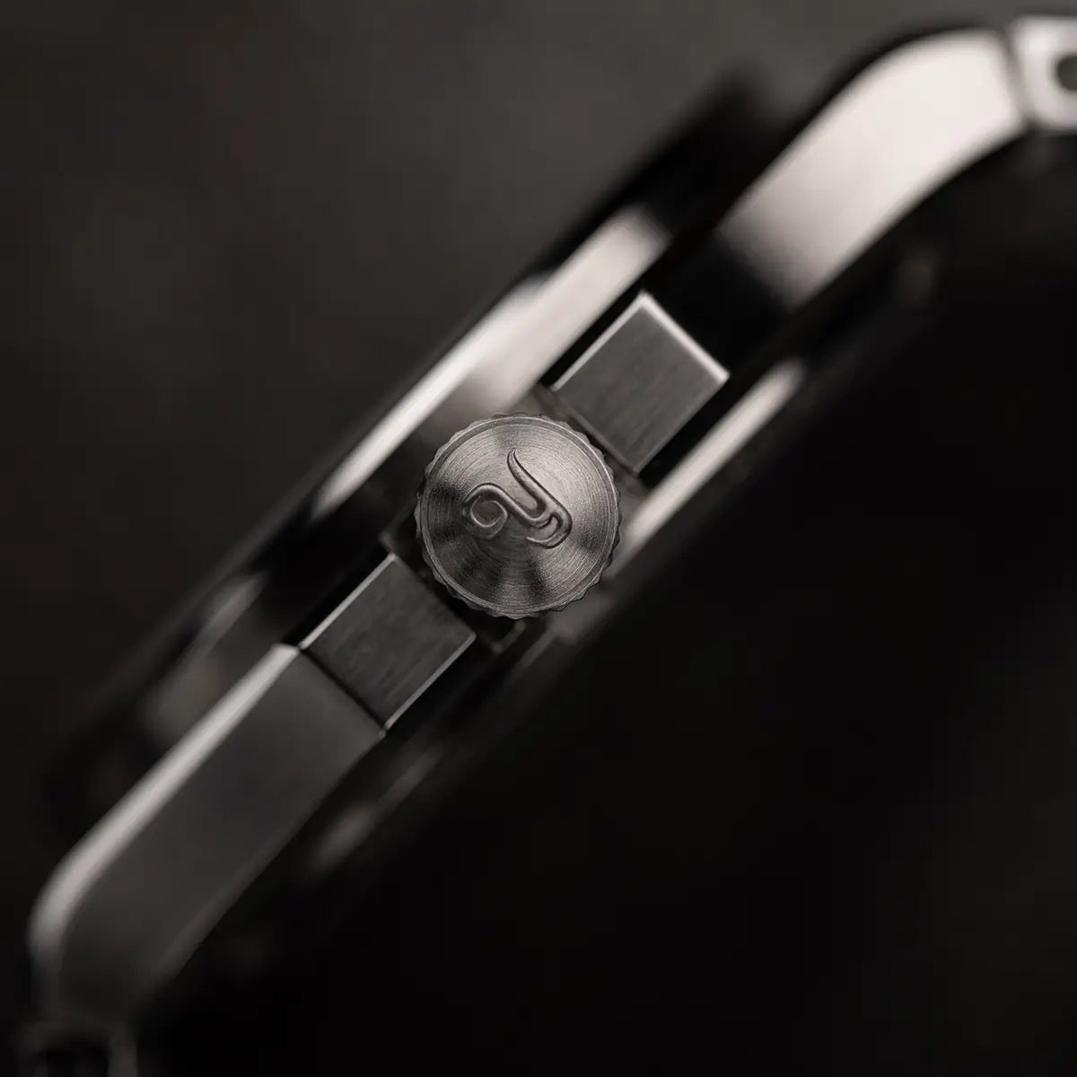 The 39mm steel case takes the form of an asymmetrical octagon. We have used the complex case geometry to our advantage by executing every single angle with the same set of irregular hand-brushed/polished PVD finishes, that captures the eye and gives great elegance and singularity to the case while preserving the marked sporting spirit.