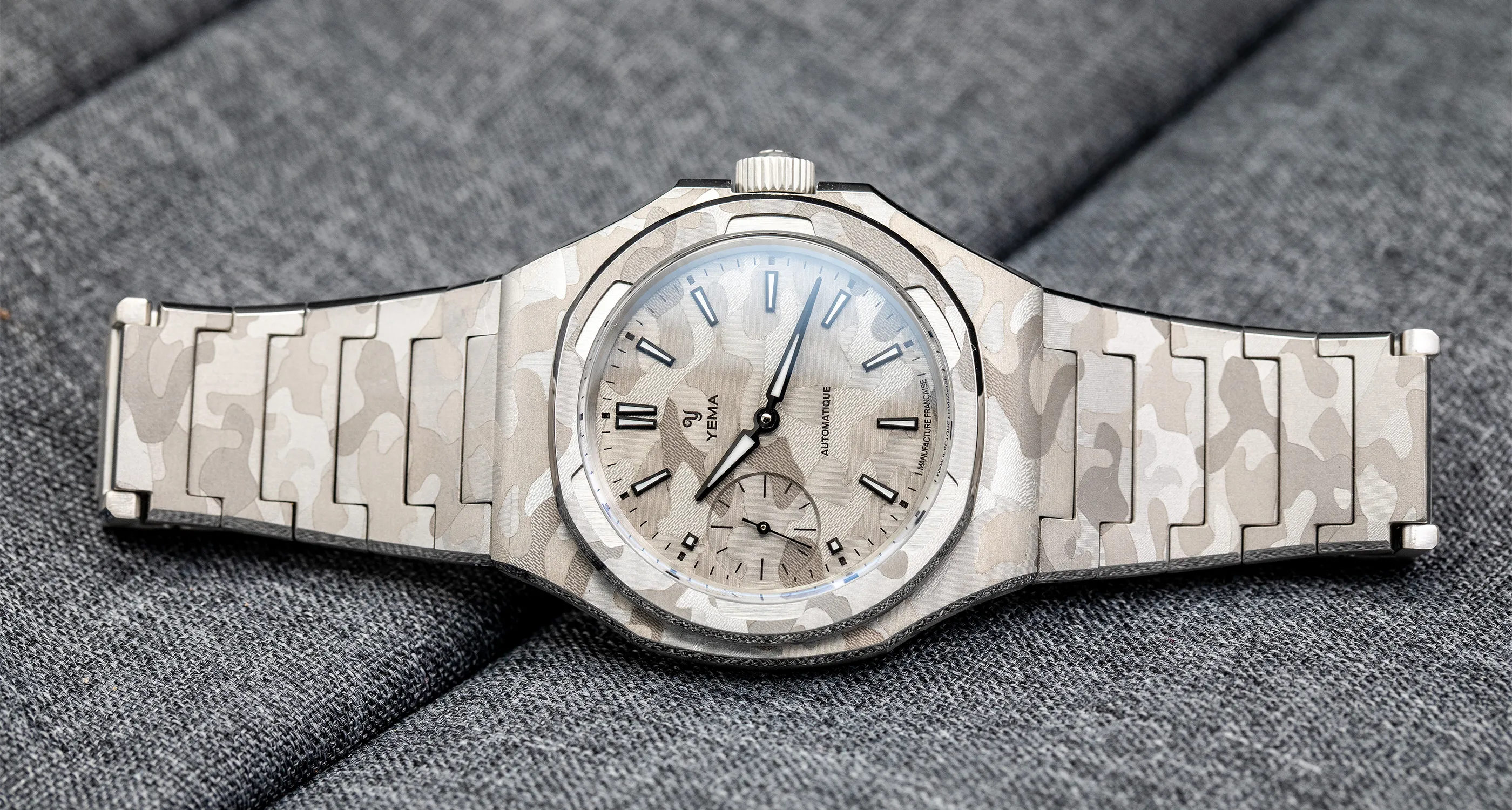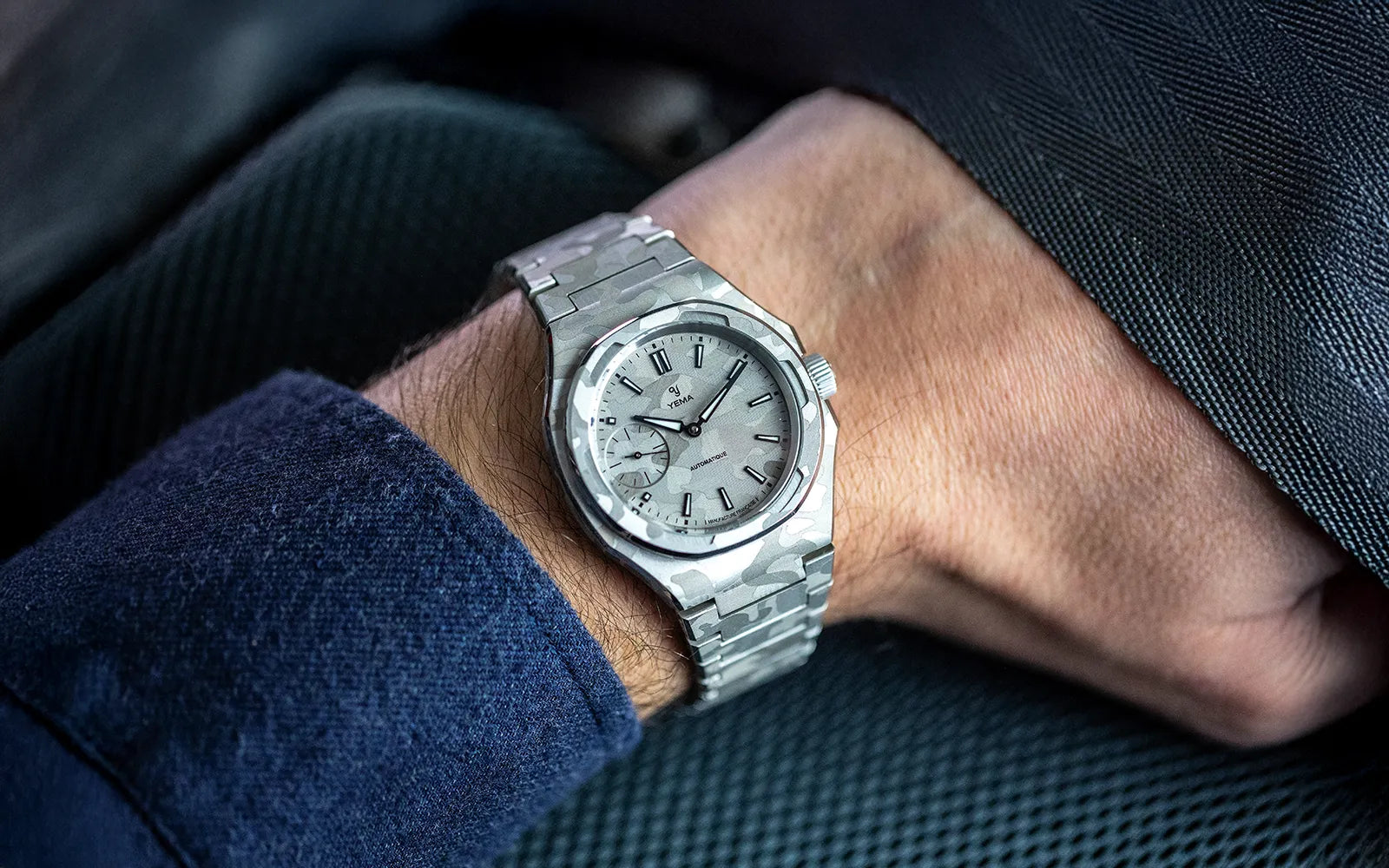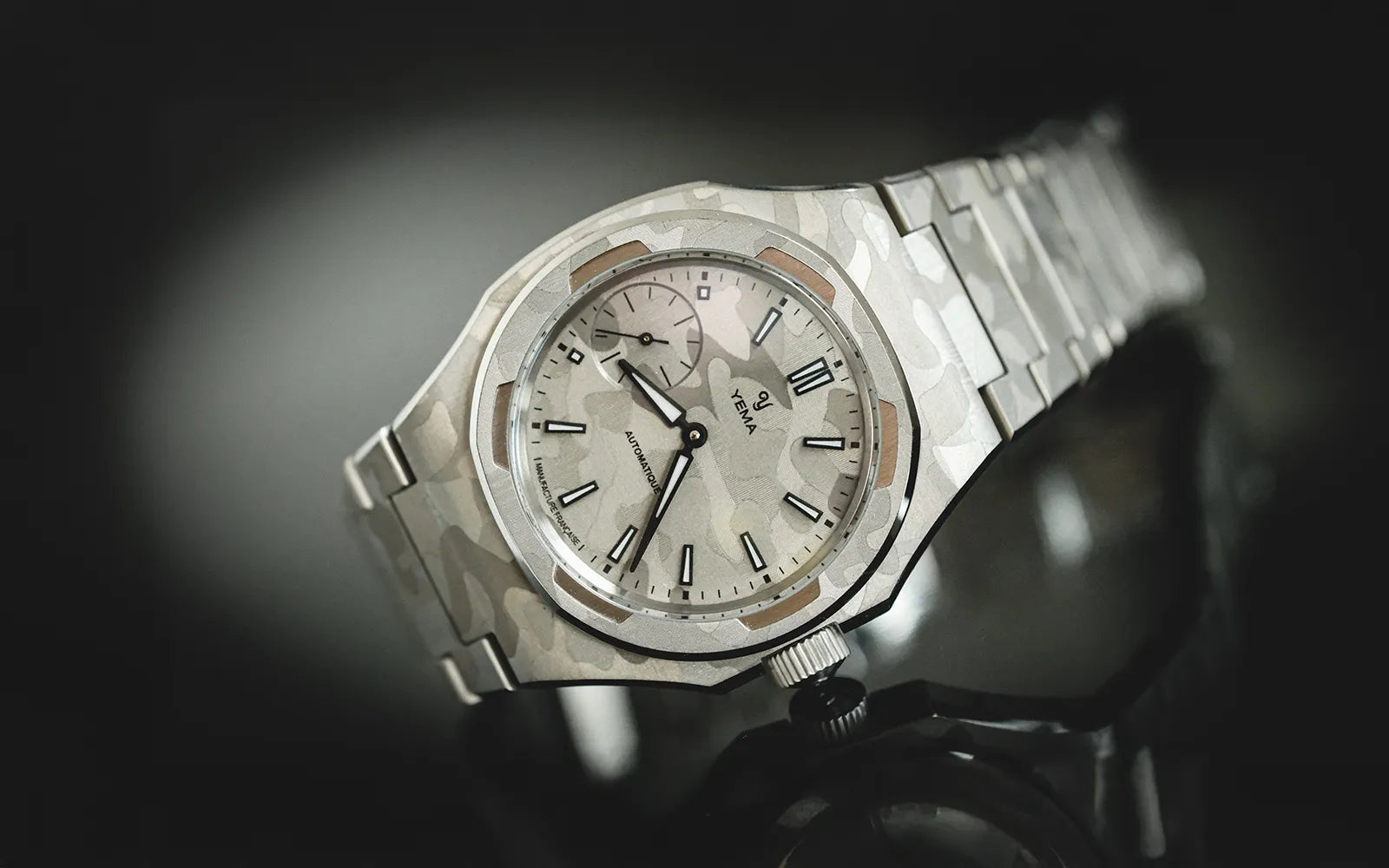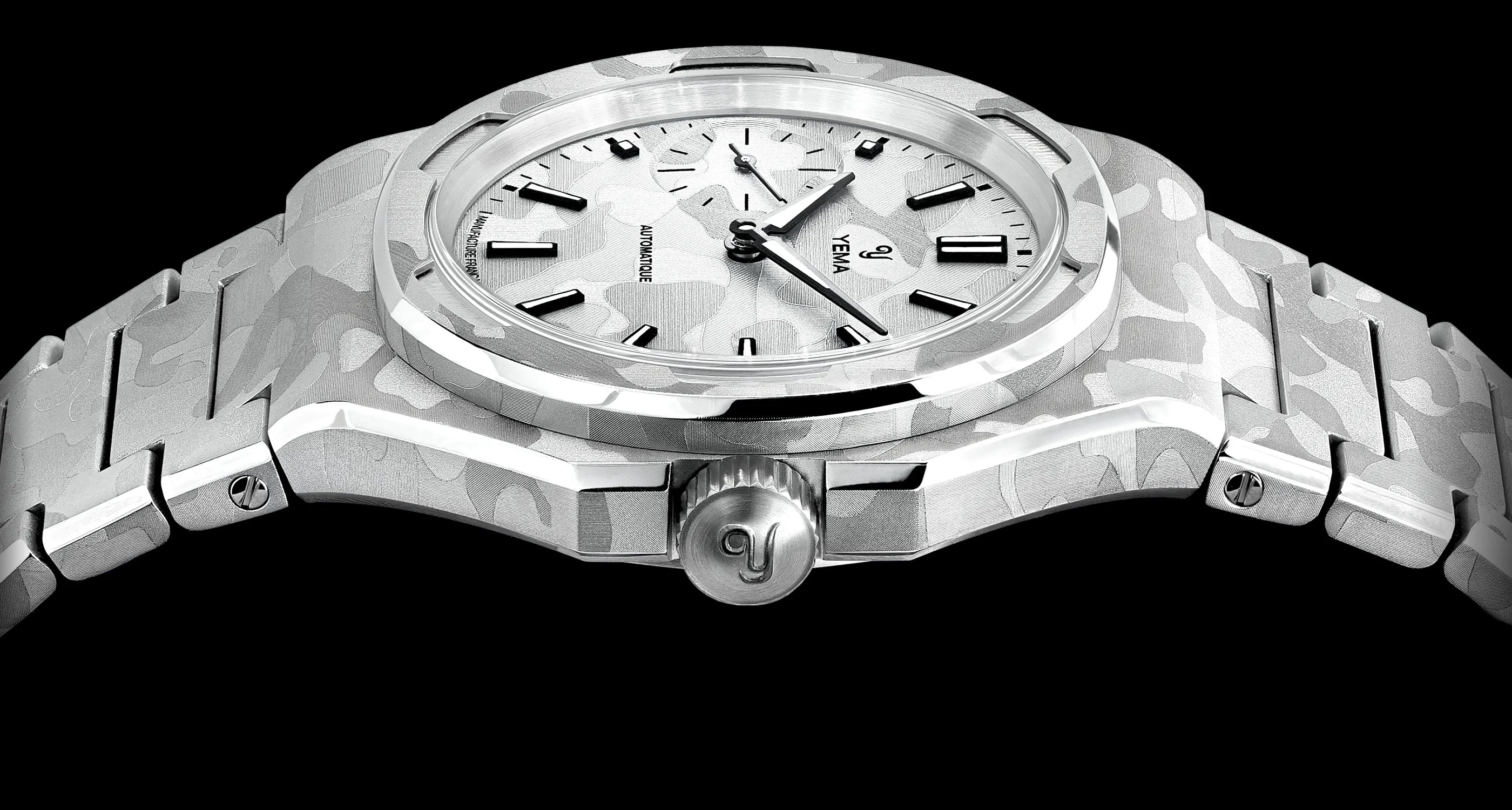 A YEMA icon featuring an integrated bracelet, the Wristmaster, returns in its most artistic expression yet with a "Snow Camo" finish. Its ultra-thin case now houses the Manufacture CMM.29 micro-rotor caliber, whose sunray decoration is revealed through a sapphire caseback. The entirely redesigned and styled dial stands out with the addition of subtly balanced small seconds.
