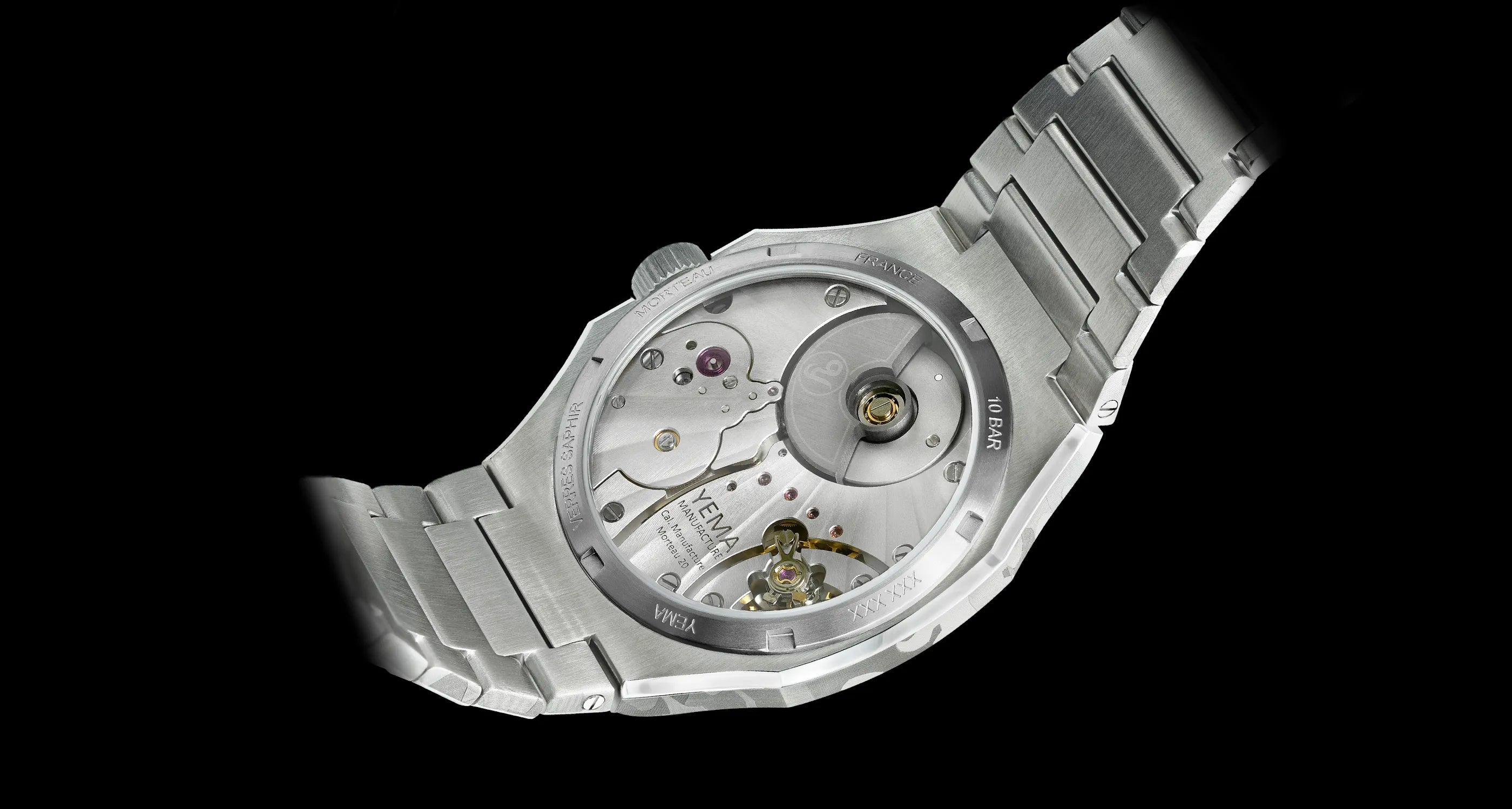 All movement components are manufactured in France and Switzerland within a range of 72km from Morteau by recognized craftsman in fine watchmaking. The caliber bridges and mainplates are manufactured in YEMA’s workshops in Morteau where final assembly of all components takes place.