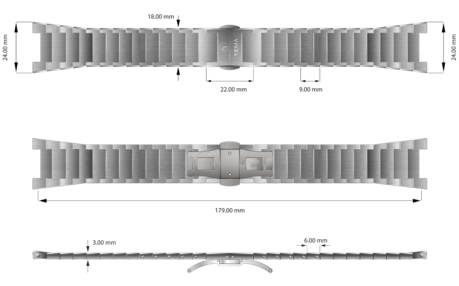 The bracelet butterfly clasp is fitted with a convenient yet elegant micro-adjustment mechanism allowing a 1.5mm to 3mm length adjustment.