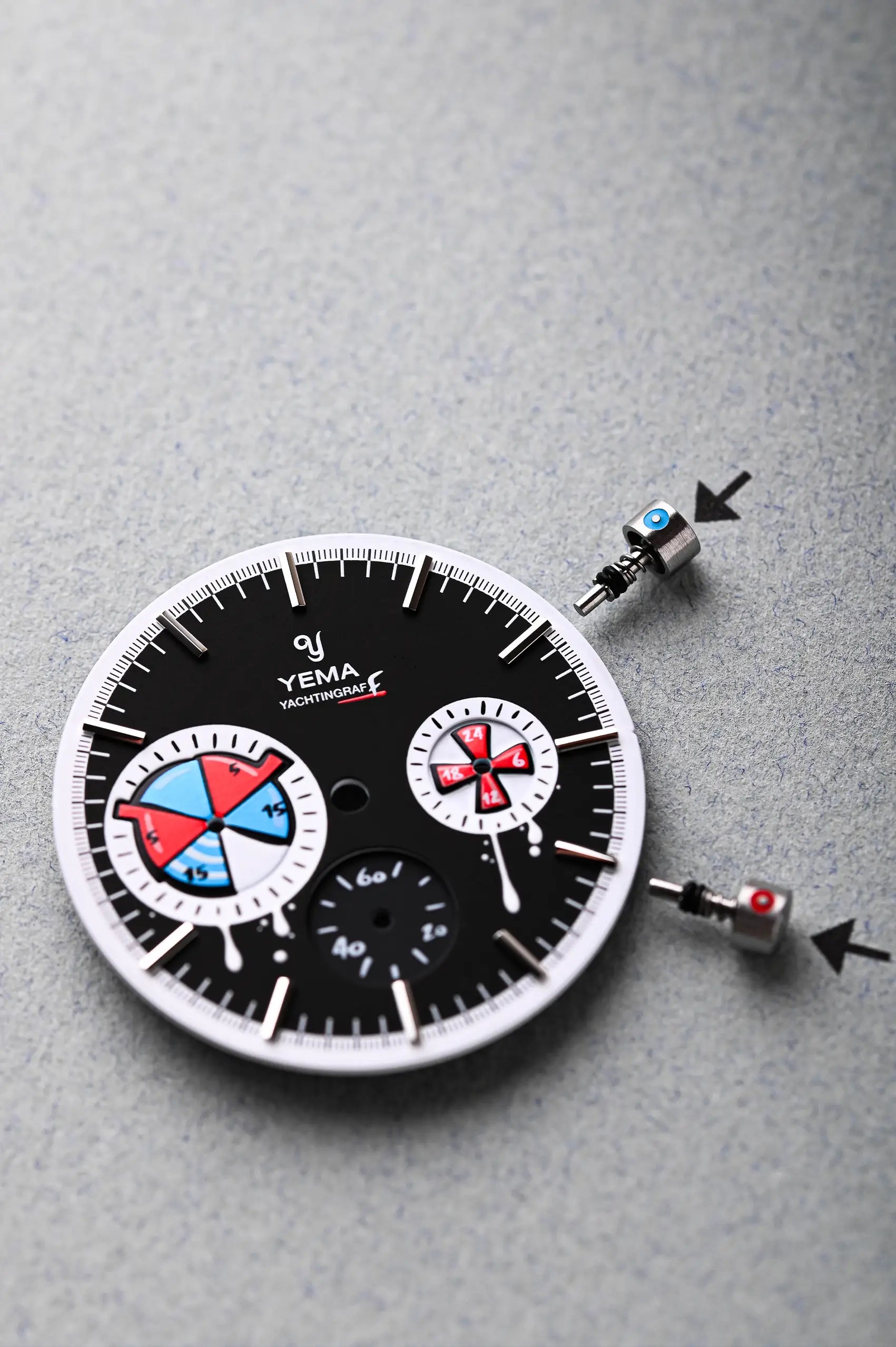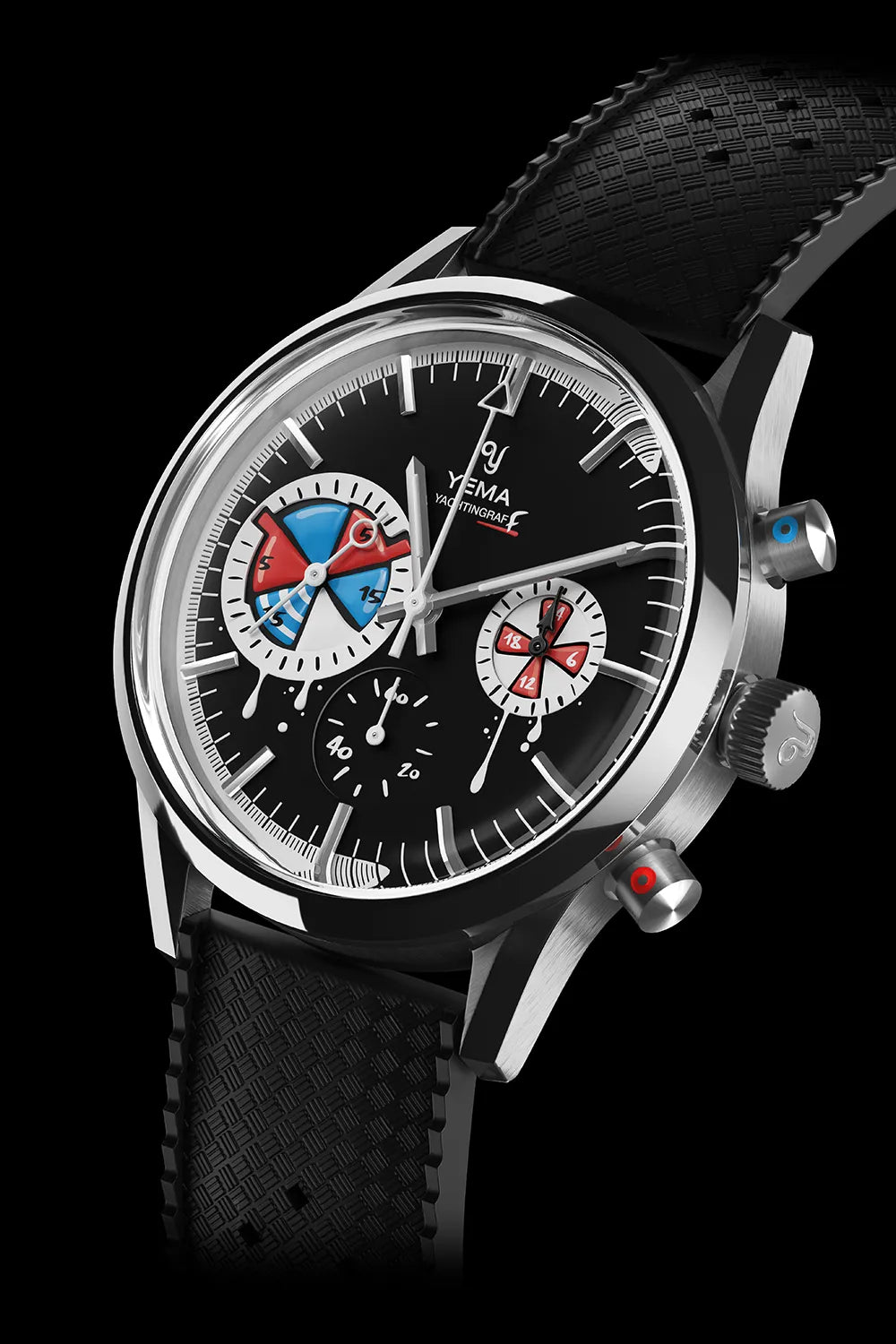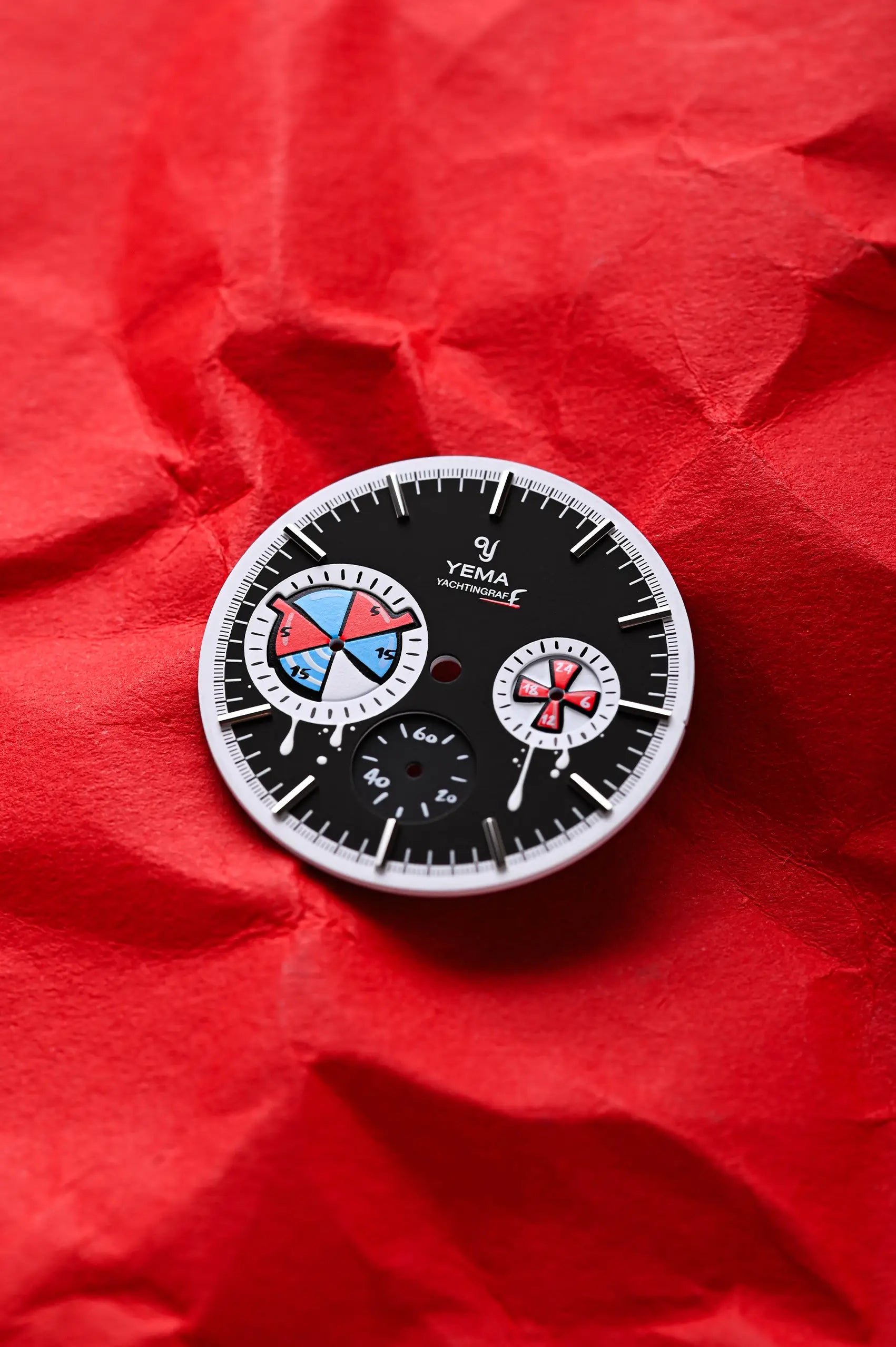 This isn’t your typical regatta timer, unless your idea of tradition includes a splash of rebellion. With a dial that looks like it got hit by a rogue street artist mid-race, and chrono pushers that resemble tiny spray cans' caps, this 38.5mm rebel drips attitude — literally.